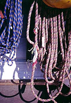I noticed, to my concern, that the rope was very badly frayed two feet from my tie-in. Moreover, it was newly tied in to my harness beyond the fray! Who did that? I must have done it by instinct, but I had no memory of tying that new knot!