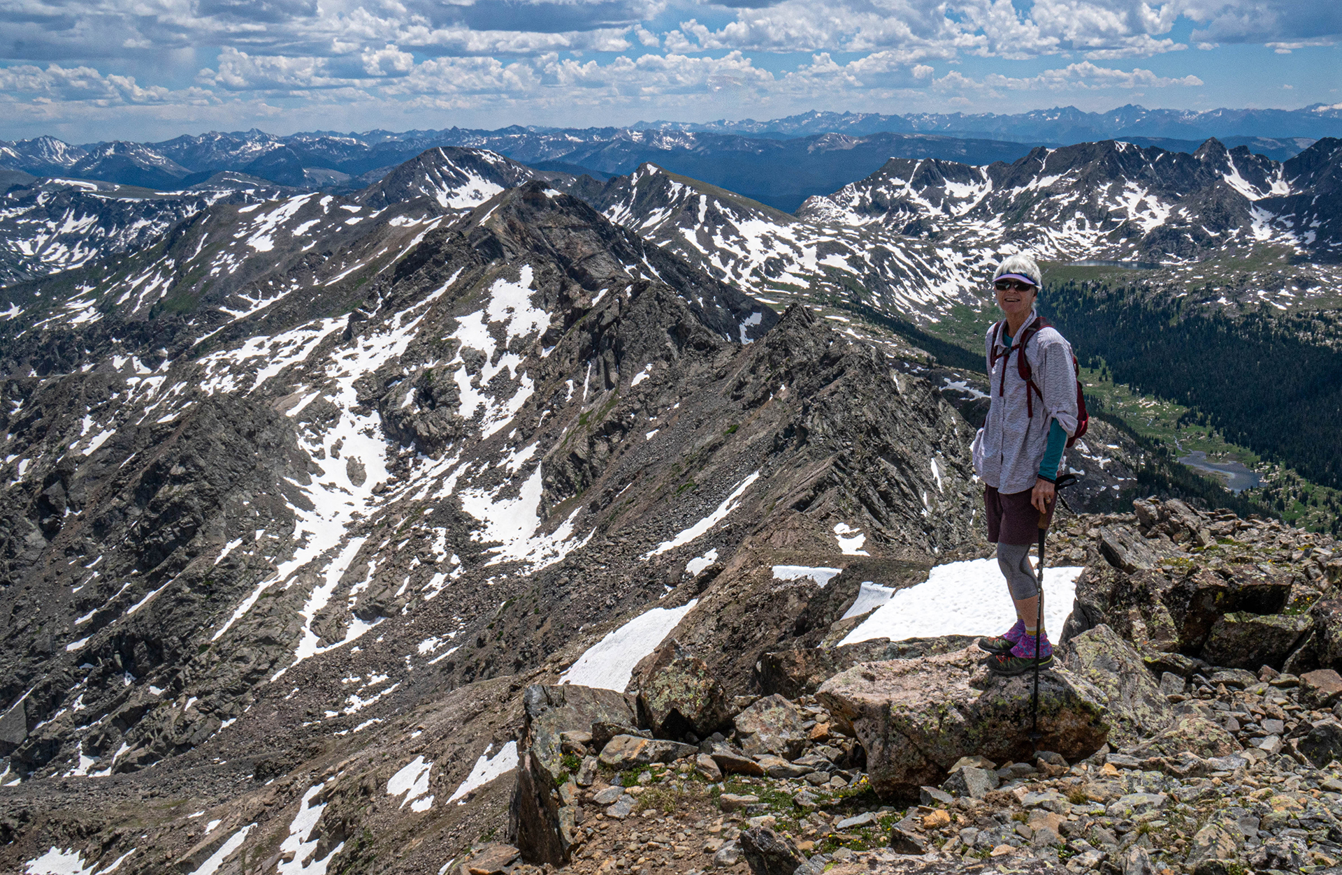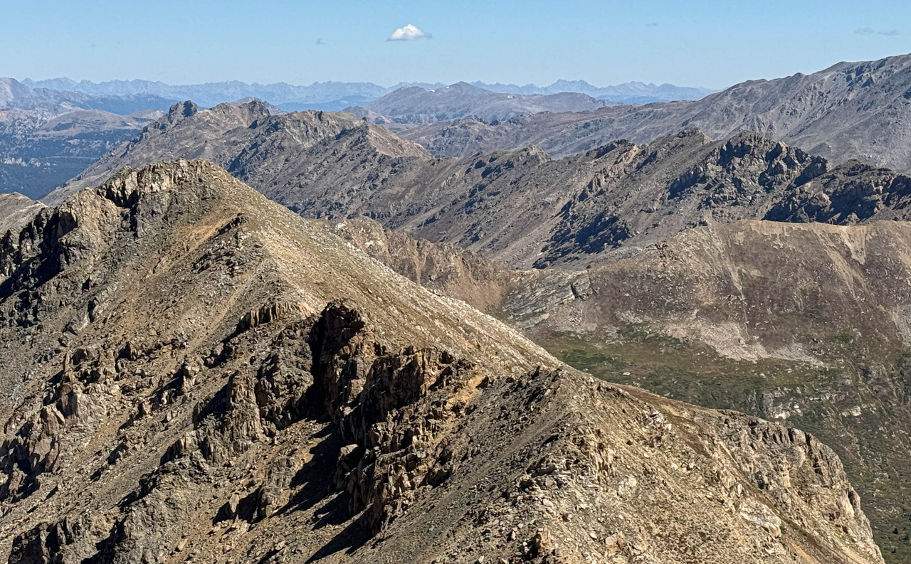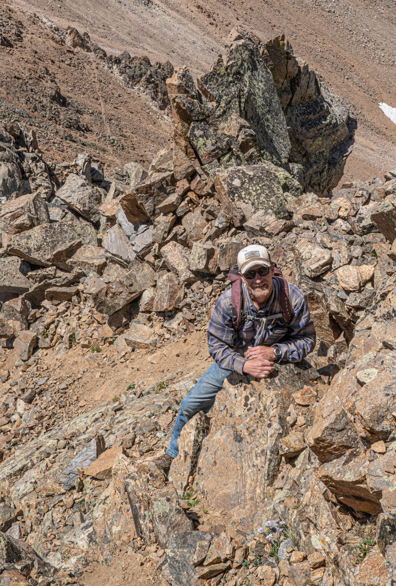 This summer had a lot of superb mountain hiking: Mt. Yale by east ridge, Bull Hill, Ouray and Star, Deer Mountain and Peak 13738, Twining, Seven Sisters Ridge, the Seldom Pass circumnavigation of West Deming, Tuhare Lakes, Gemini, Falcon Ridge on Wichita (twice), Igloo (via 4th class south ridge) and, perhaps the most noteworthy, a climb of the rugged ridge from Sheep Rock Mountain to Virginia and Winfield Peaks.