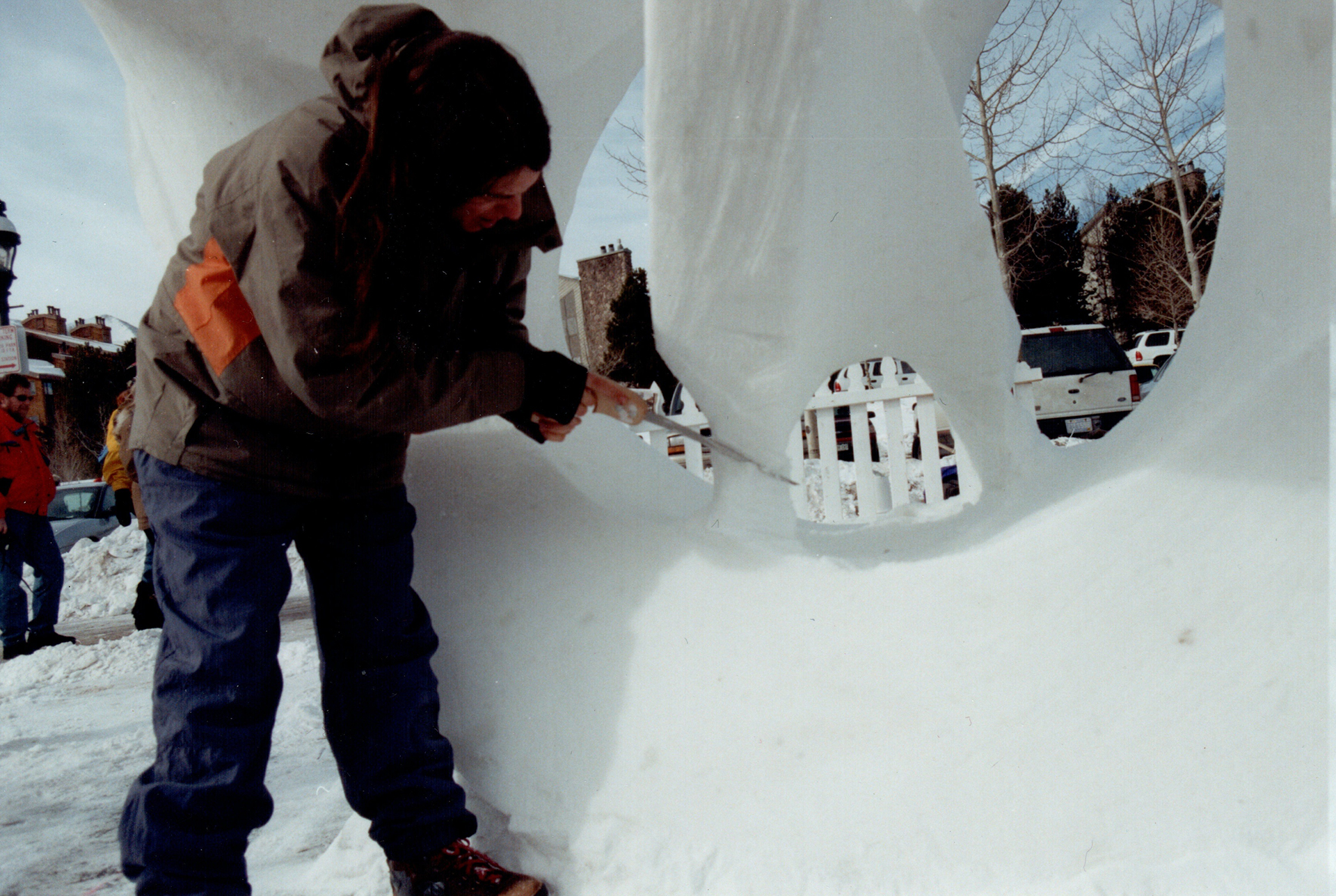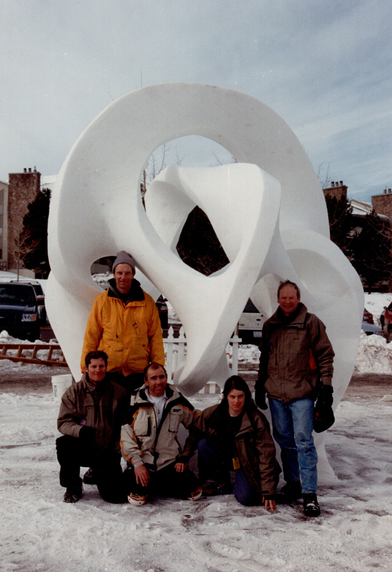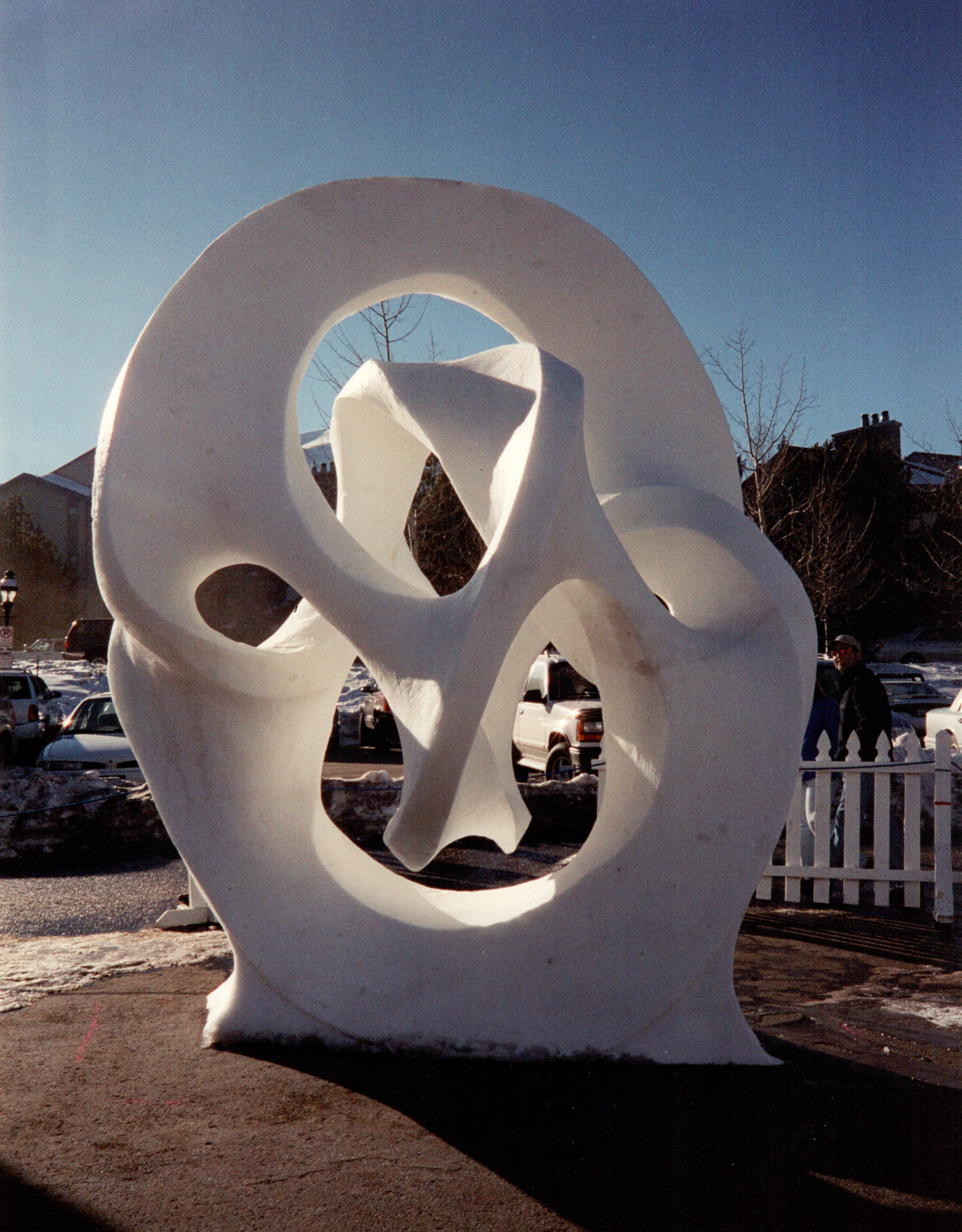 Matthias Weber (Indiana University) worked out the topology of the 2-dimensional surface represented by the sculpture: it is nonorientable, and is a Klein bottle with one handle added and two disks removed. Its genus is 1. The genus of the 3-dimensional orientable closed surface is 5.