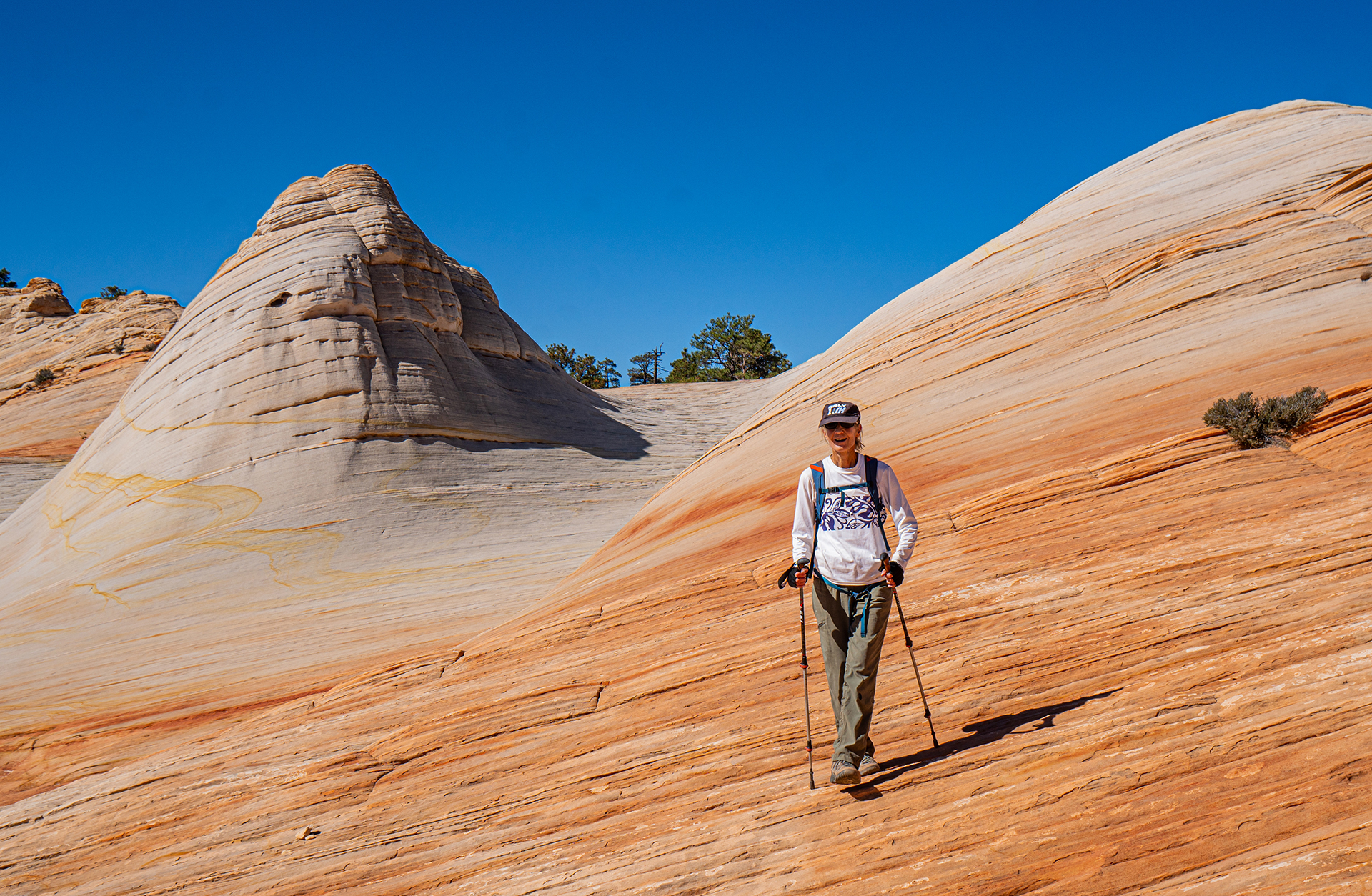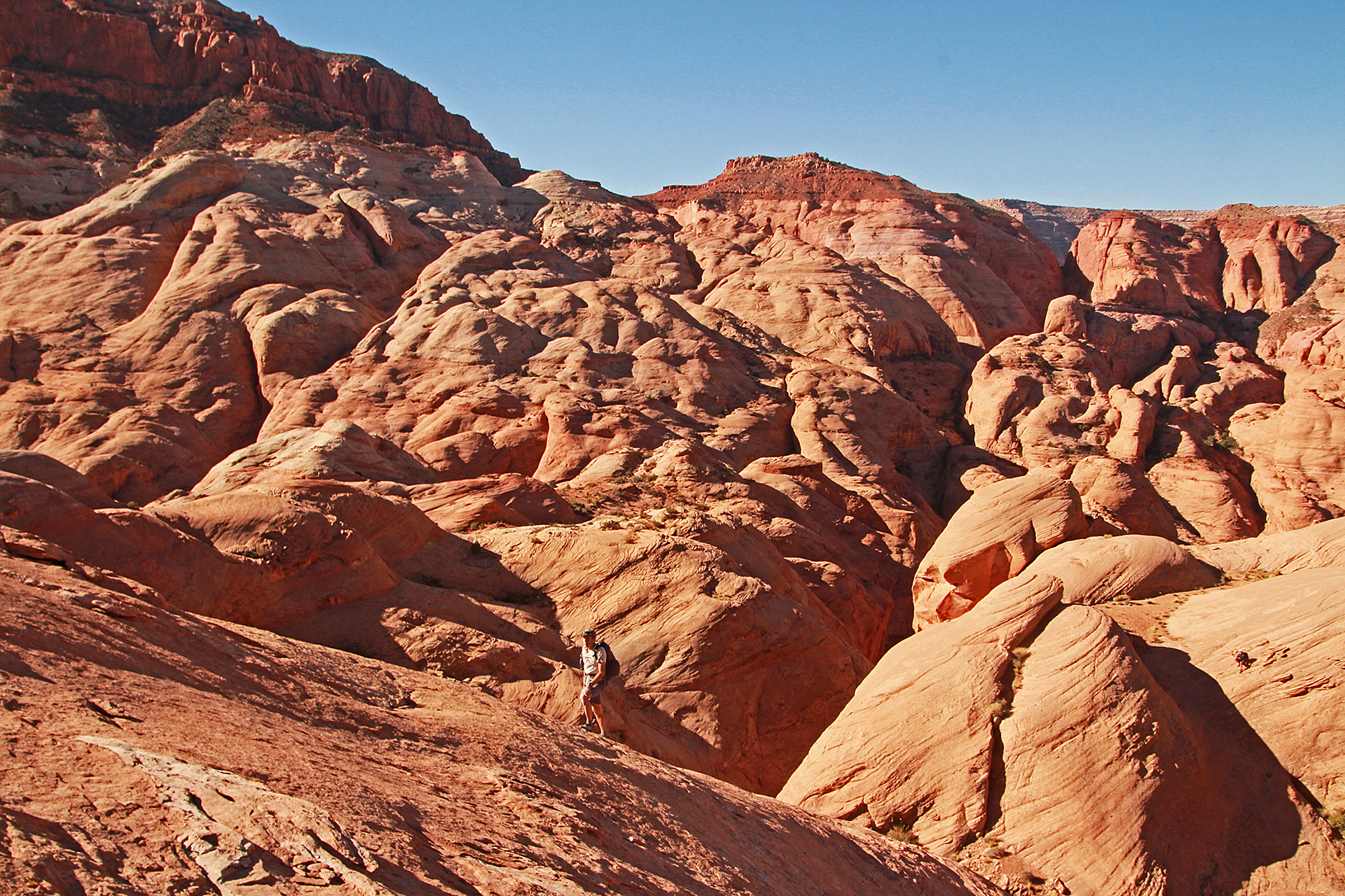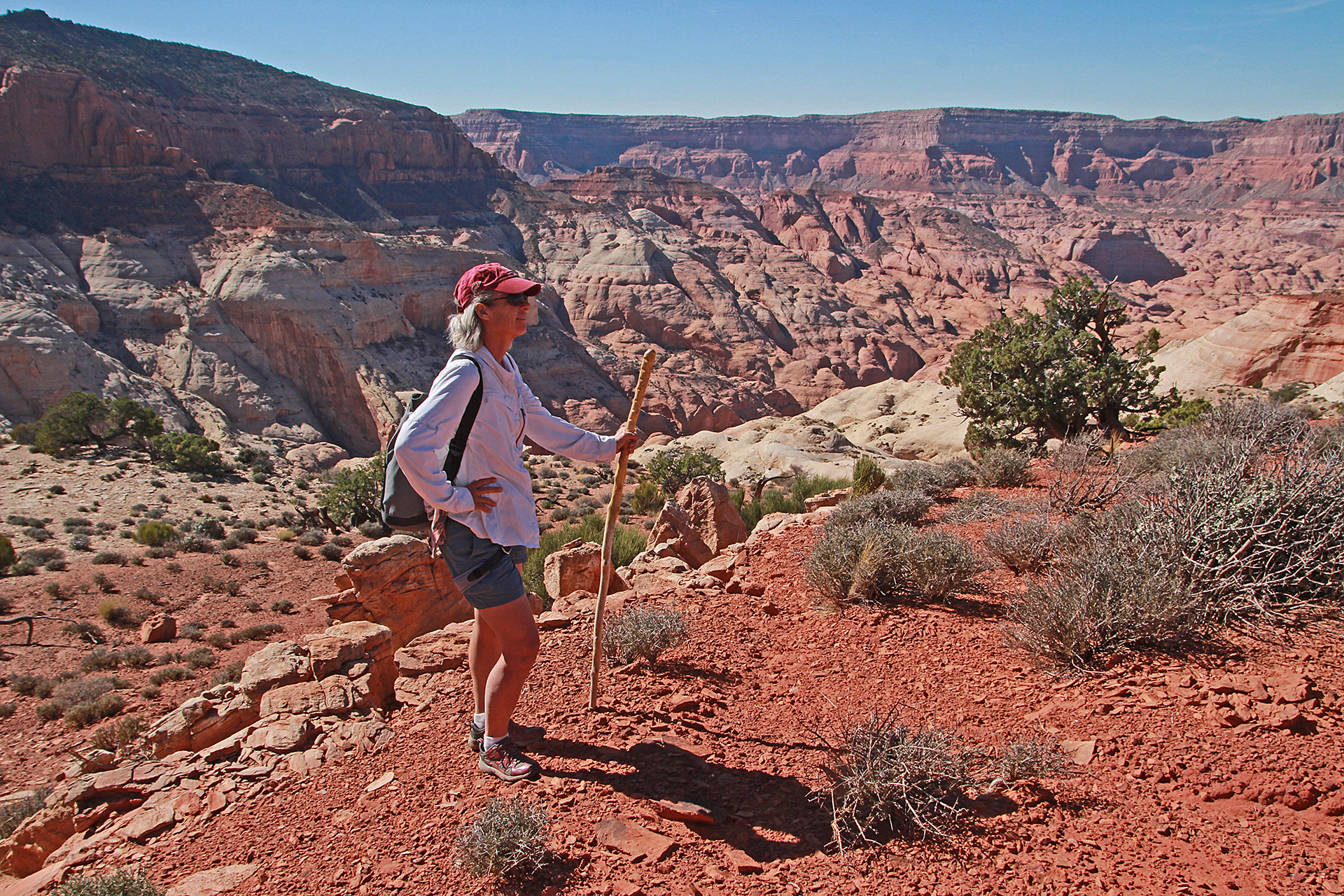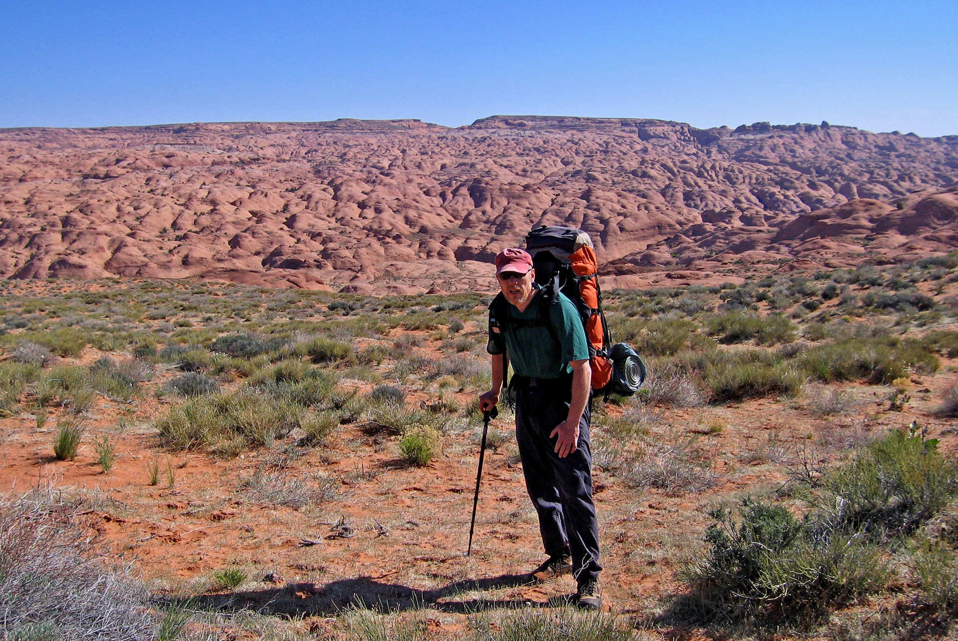 My friends often model for me with occasional excellent results. Thanks to my hiking companions for making these trips so memorable. Shown here are Katie Larson, Bill Briggs, Phil Hage, David Nebel, Dave Blakeslee, Janet Jacks, Joan Hutchinson, John Hutchinson, Kim Clark, Elke Dratch, Jonathan Kriegel, and me. And thanks to Ricki Brown for permission to post his picture of Sandy Brown with the Neon Devil. Clicking on an image expands it.