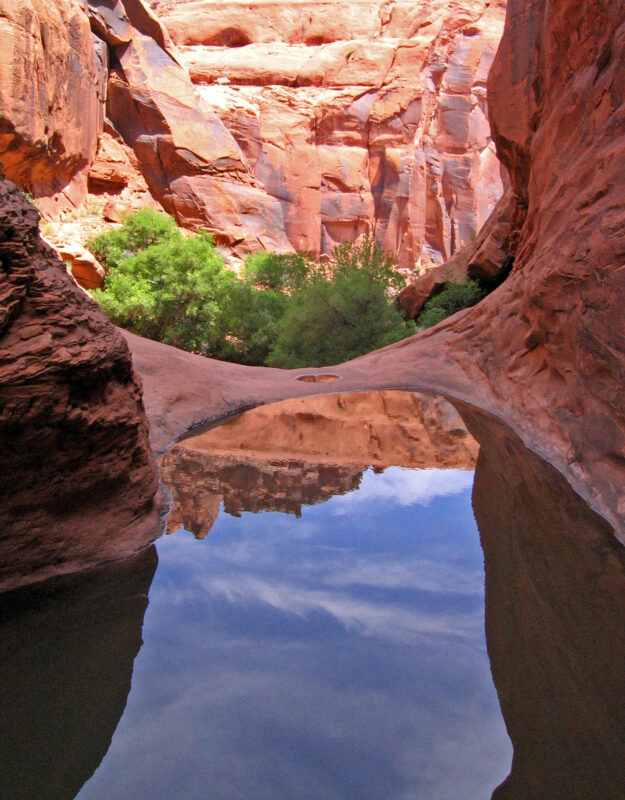 The arid canyon terrain of the Colorado Plateau, especially near the towns of Escalante and Kanab (Utah) and Page (Arizona), is surely unique in the world. There is a very large area containing an amazing diversity of canyons, from the frighteningly narrow Brimstone Canyon, to the sculpted delicacy of Peek-A-Boo and Spooky, to the wide meanders and rincons of Hall’s Narrows. Opportunities for interesting photography abound.