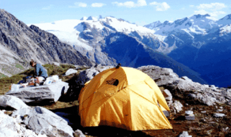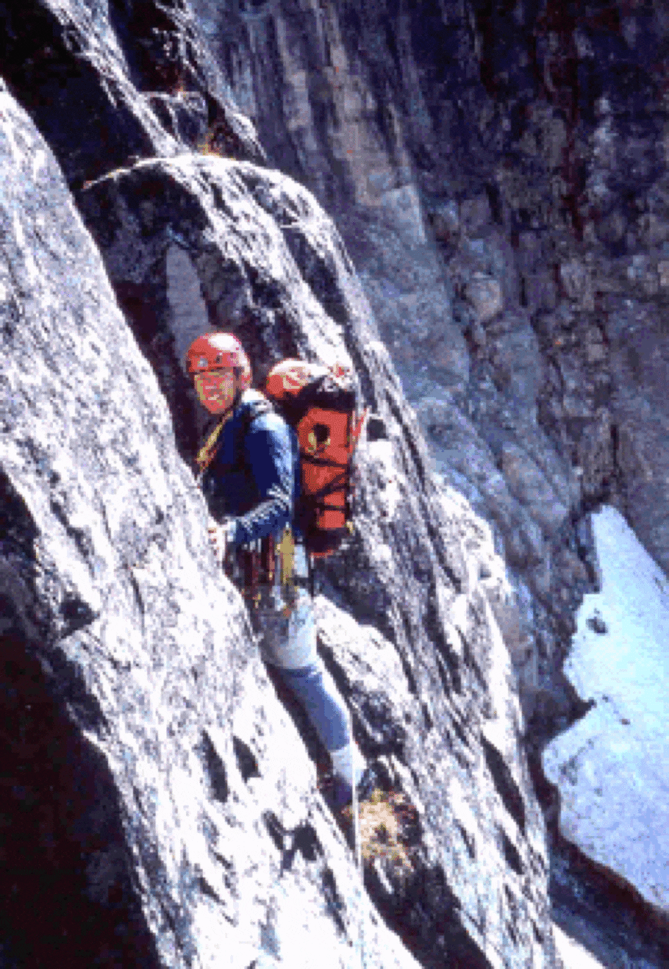 Back at camp at 9:40 am, pasta for breakfast, rested a bit, and then spent 12-2 descending the steep trail. Comparing the guidebook time of 7 hours car-to-summit to ours of 28 hours, camp-to-camp, one might think we were pathetically slow. But it sure didn’t feel like it. It was a big effort and though the rock is not as spectacular as Snowpatch Spire, the route provides a fine example of hard climbing in a mountain environment, and on a face in a spectacular position.