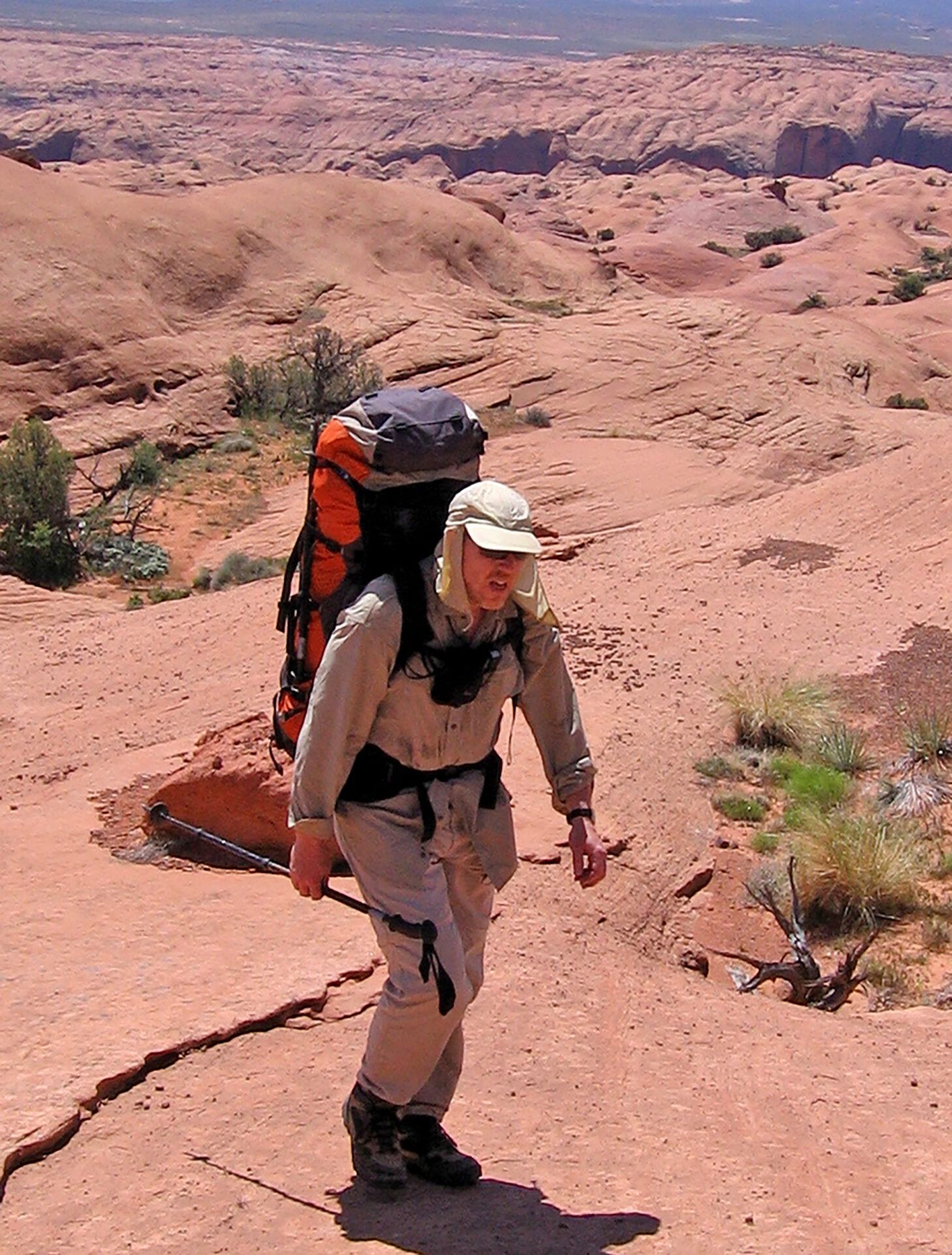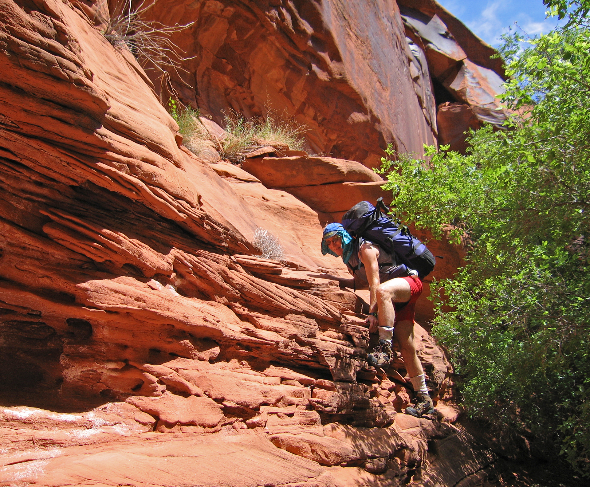 Phil Hage (55, St. Paul), John Hutchinson (60, Seattle), and I (56) did a 5-day backpack in the Fools Canyon area of the Escalante from April 29–May 3, 2007.