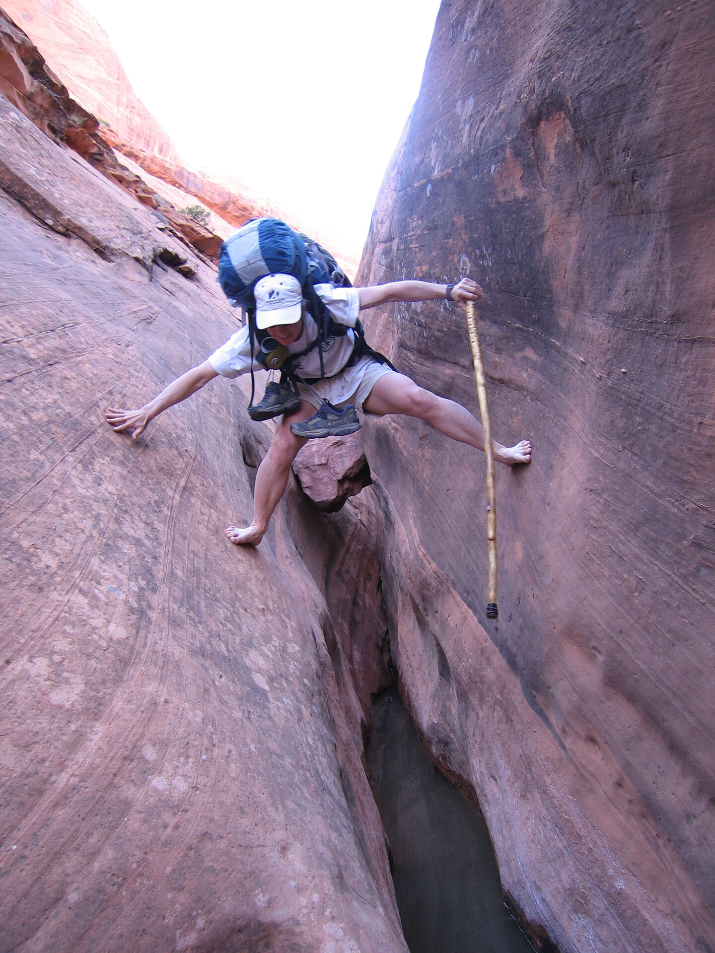 The backpack route: Middle Moody parking to 40-Mile Ridge parking via upper Middle Moody, top of East Moody, Upper Georgie’s Camp, Fold, Shofar, Hydra, and Ichabod Canyons and then a four-mile walk down the Escalante River to Coyote Gulch and the Crack-in-the-Wall exit to the car.