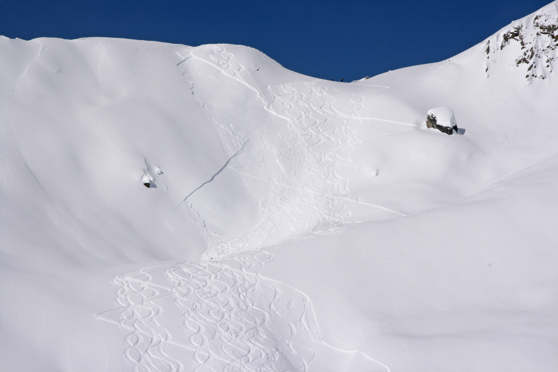 Five others who skied on their own: Ryan Creary (photographer, ryancreary.com) with snowboarder Scot Heale (NZ) and skier Tim Haggerty