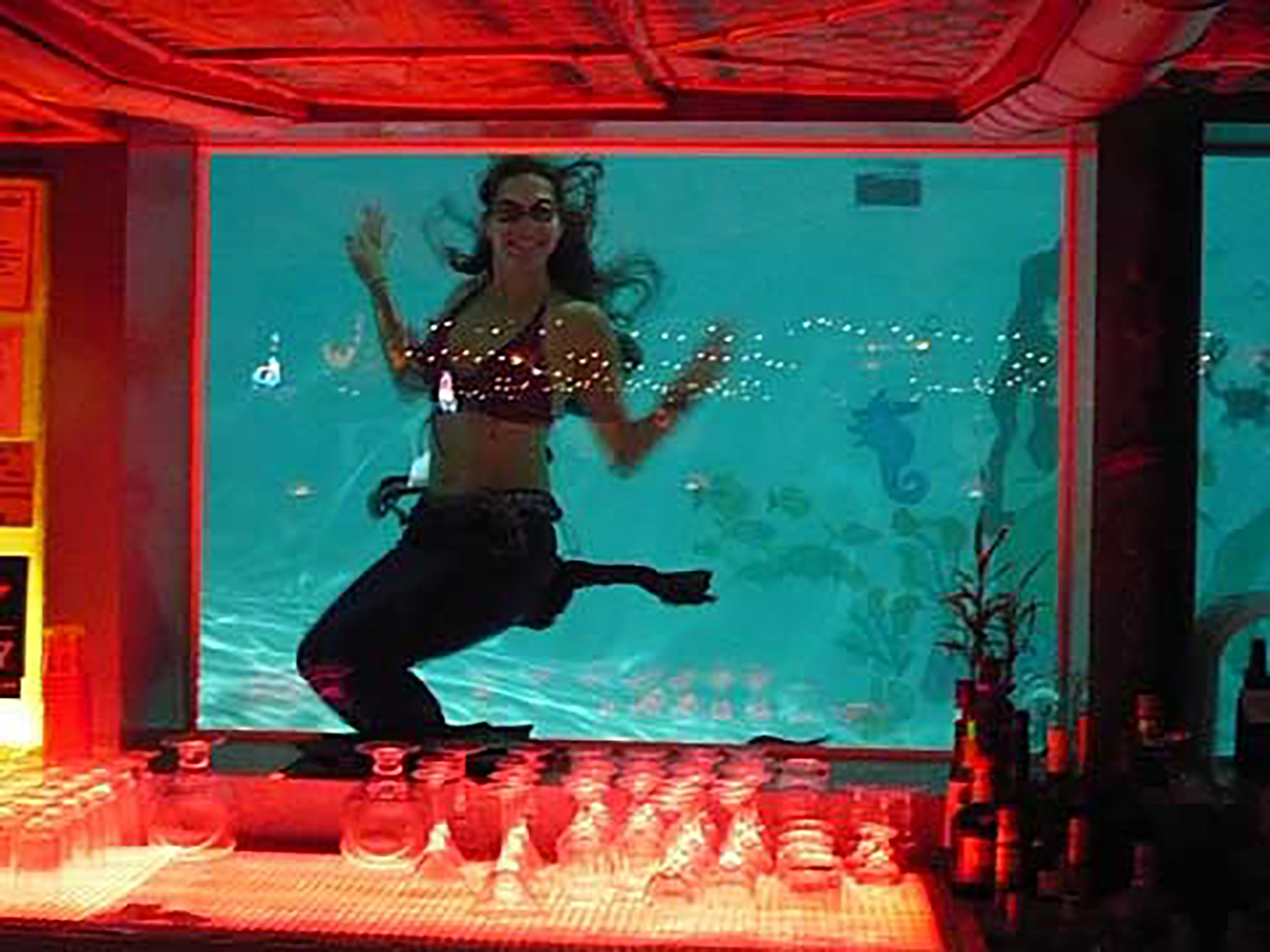 Thursday April 12, 2012: Leave at 5:30 am after Bill drops Elke off and Kim comes in from Zuma. Easy driving to north of Cheyenne. Then Elke took over to Billings (where our roof box, kindly loaned to us by Jonathan, went sideways about 10˚ on the roof due to high winds; emptied it, straightened and tightened it). Then Kim drove to Great Falls. Had an ok dinner at the O’Haire Motor Inn but learned that the mermaid show did not start until 9:30. We packed a bit and rallied to the bar at 9:45 for the amusing show. Two mermaids in fins and bikinis frolicked behind the bar, while Piano Pat played Margaritaville and similar on the piano. The place was packed. Bit of a weird scene.