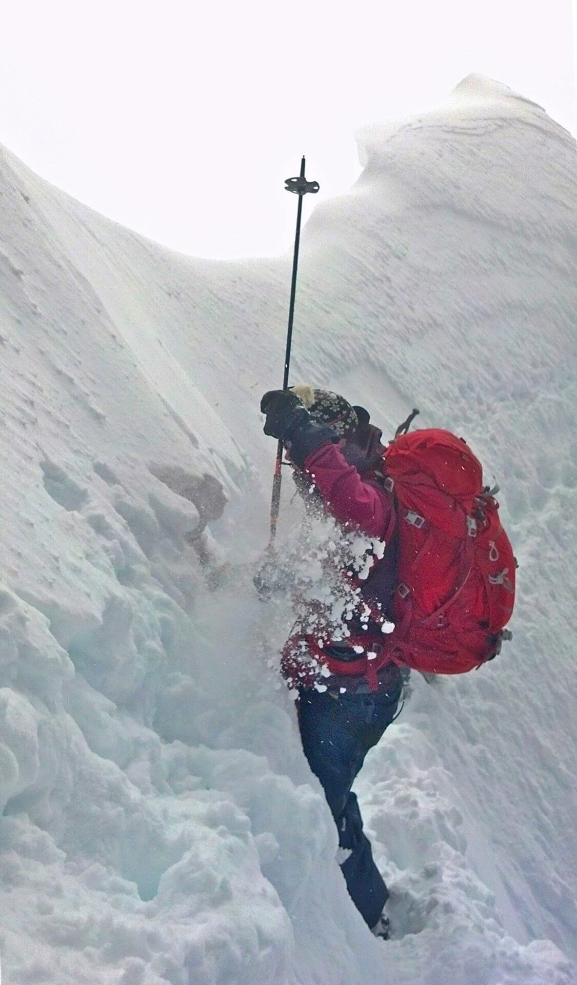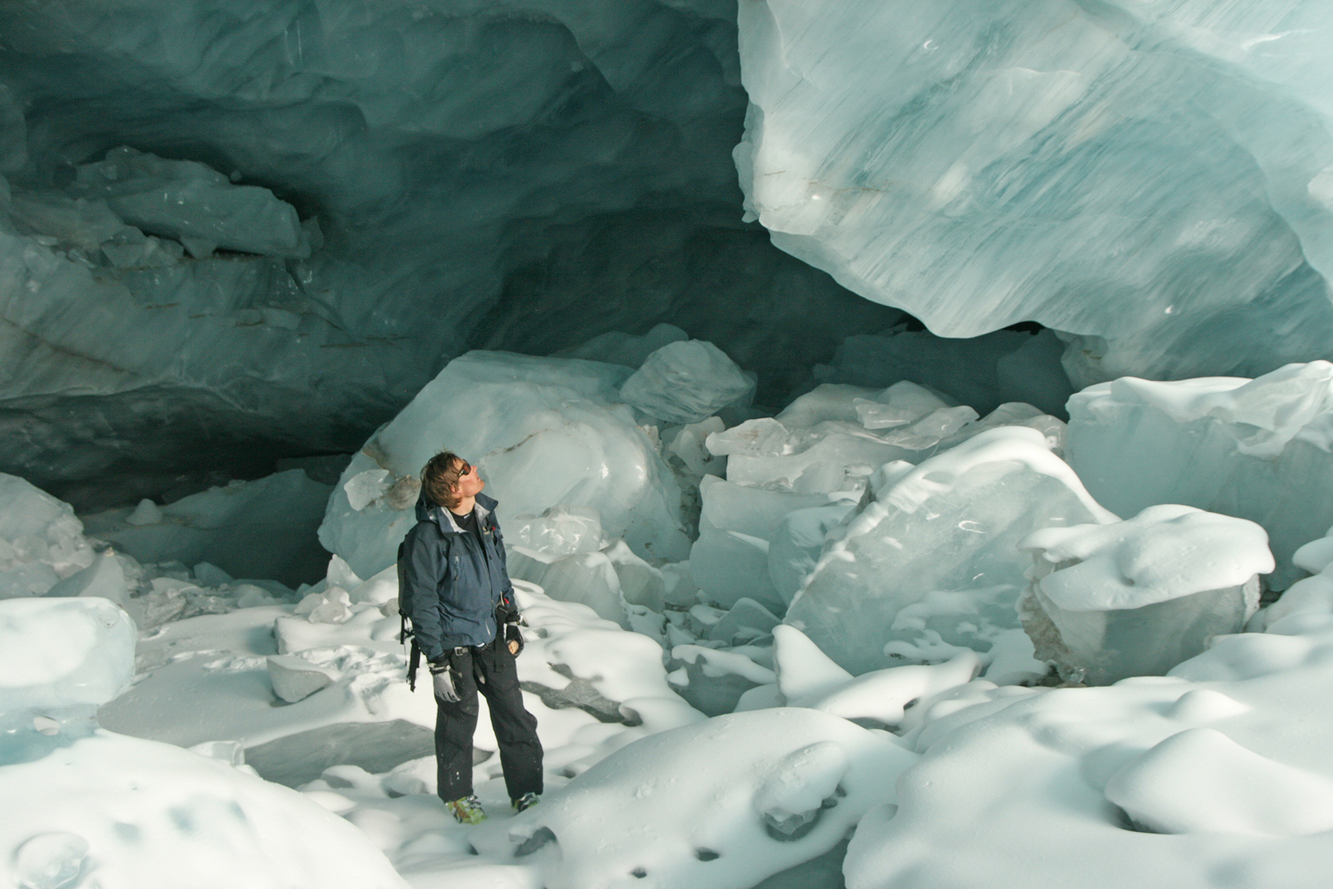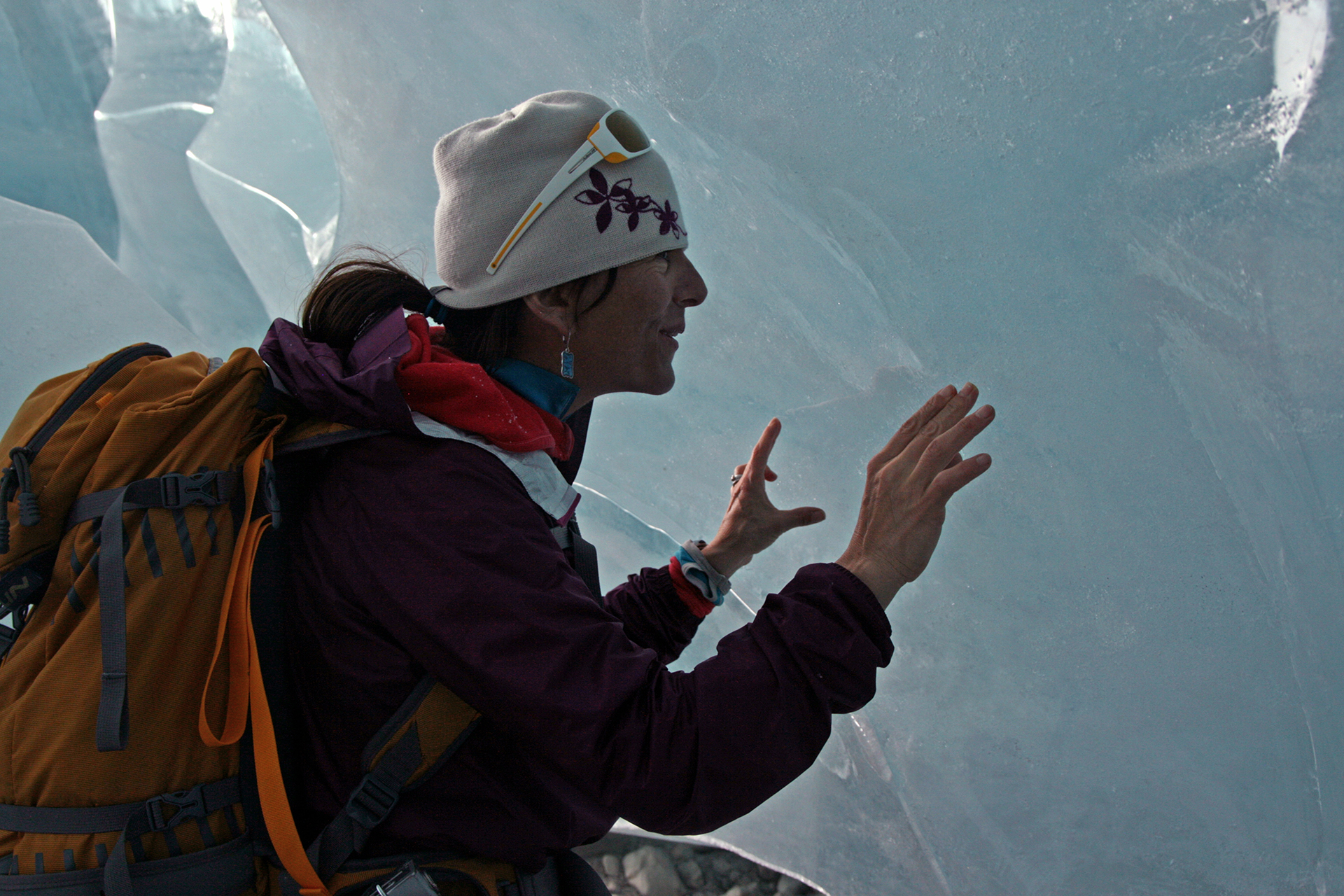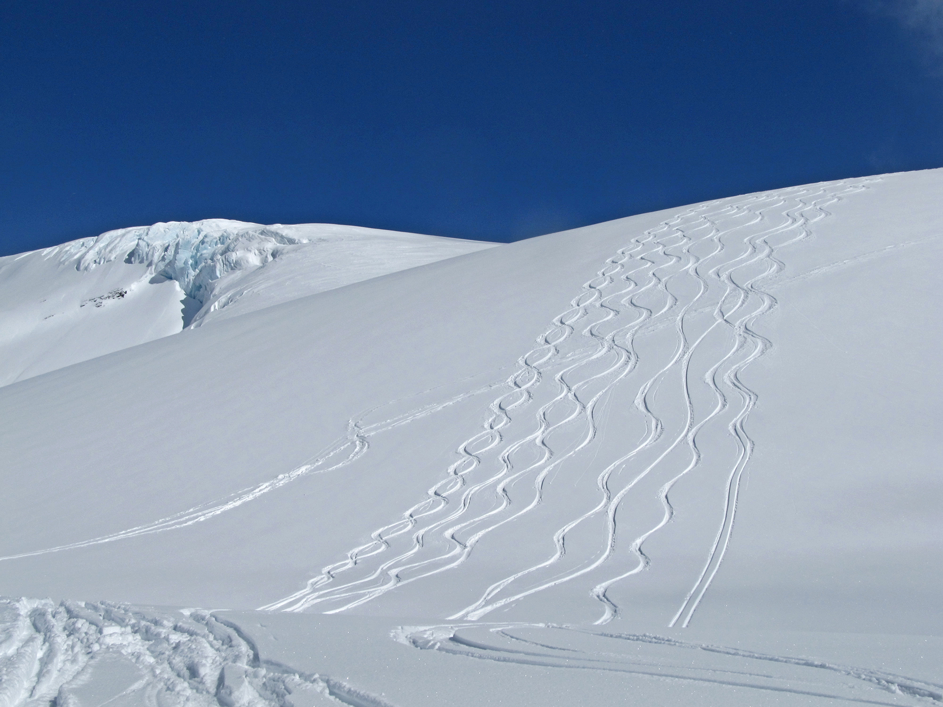 Monday: 8:15 – 4:50 again, so longer than yesterday, but only 5400 climb. To the Diamond Glacier and the serac tour which was truly spectacular. As I was passing the second serac area, there was Pierre BELOW me. How did he get there? Well, there is this year a ski route through the crevasse. Very cool. Returned to lodge by Zen Glacier as usual, with a side trip to see the old water hole. It is no longer used as the pumping system now works perfectly. Sauna in evening.
