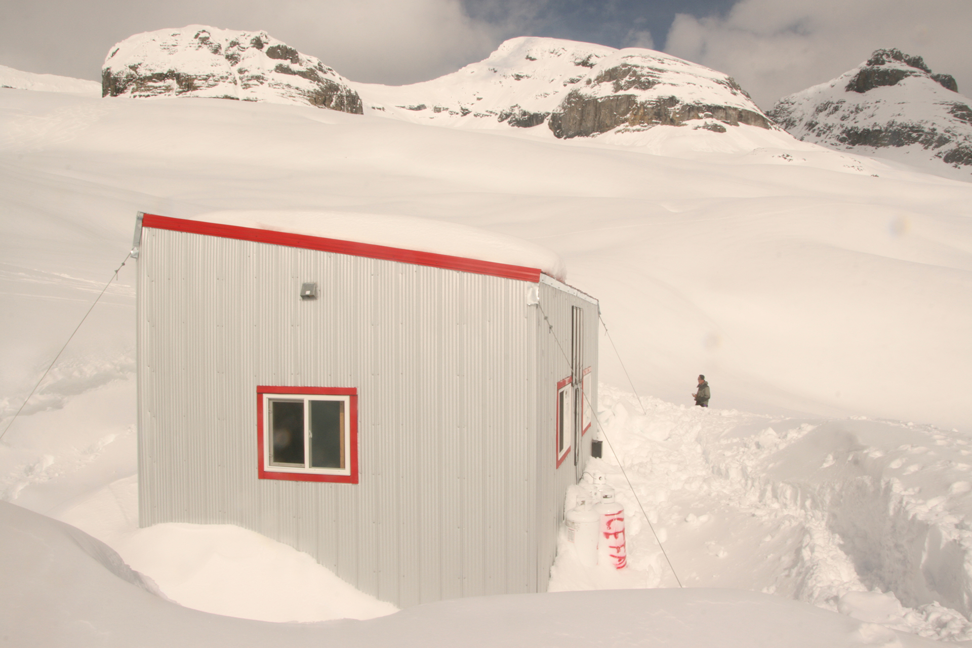 One problem: There was a problem with one of the heli seats and it destroyed the seat of the pants of whoever sat there. This happened on the way in and we assumed it would have been fixed by now. We have no idea what the issue was (no smell). But Kim’s ski pants were ruined on the trip out. [Edit: We were told by another helicopter guy that it was almost surely some explosive material from avalanche control when the machine was used for heli-skiing.]