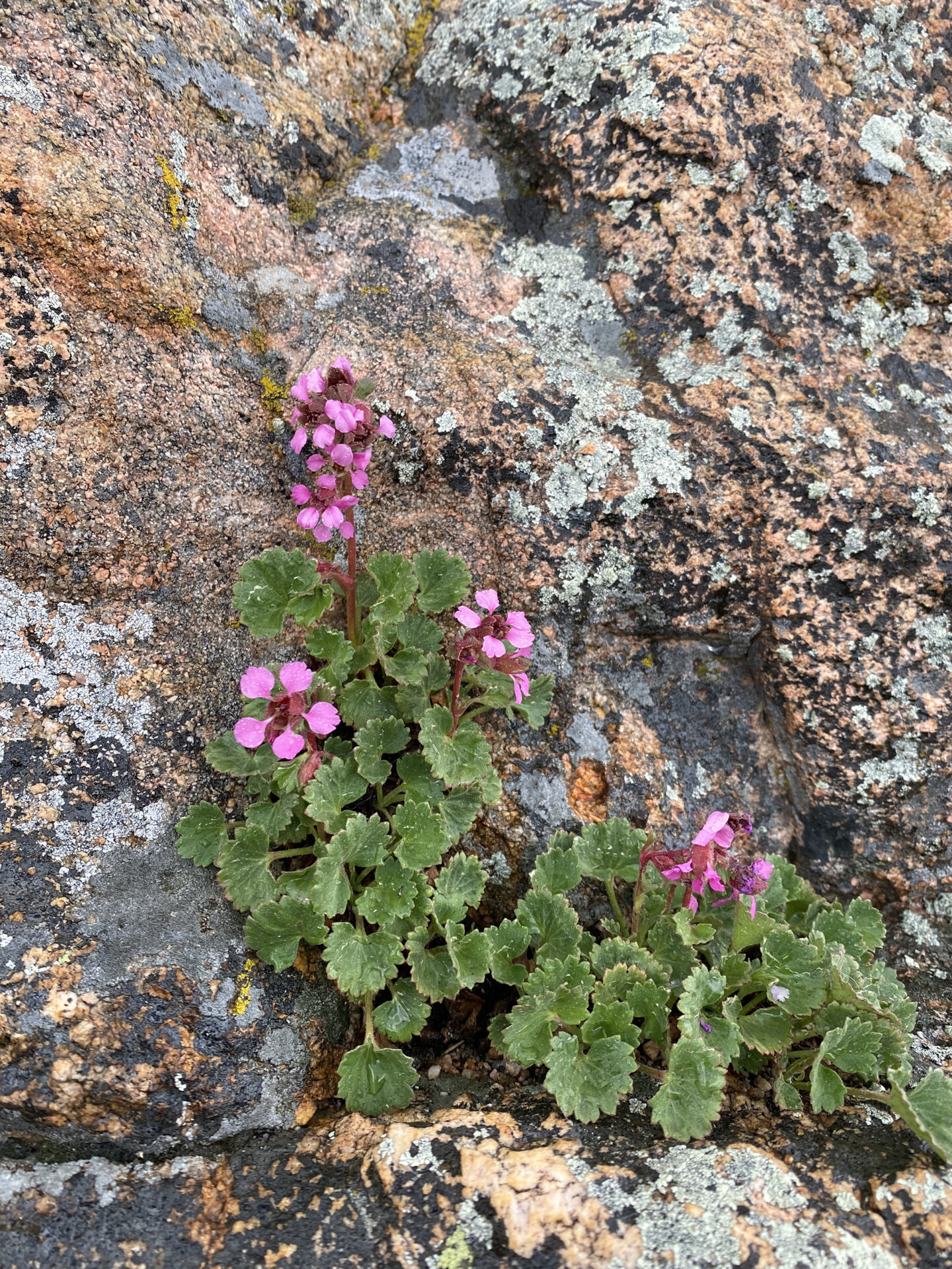 These grow in and atop the cliffs of Staunton State Park near Conifer, Colorado. It is a saxifrage with leaves slightly reminiscent of Brook Saxifrage. Seen June 25, 2021, on the Mason Creek loop, and also a couple years later near the prominent waterfall at Staunton. The last photo is by Katie Larson.