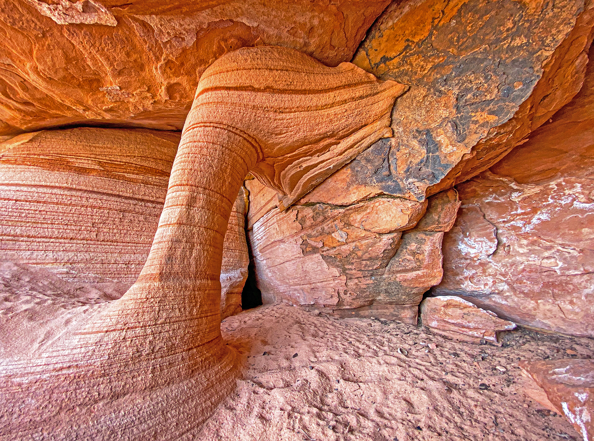 Tuesday April 16. Drive to Hildale, Colorado, for the Squirrel Canyon Trail to Eye of Heaven Arch (shortcutting the trail route) and return via the standard trail route. 10.5 miles, 8+ hours. Bob, Katie, Elke, Janet, me. The arch is interesting and large, but does not yield a great photograph. On the return trip we want below a beautiful sandstone wall that might be worth visiting in future. We saw no people this day.