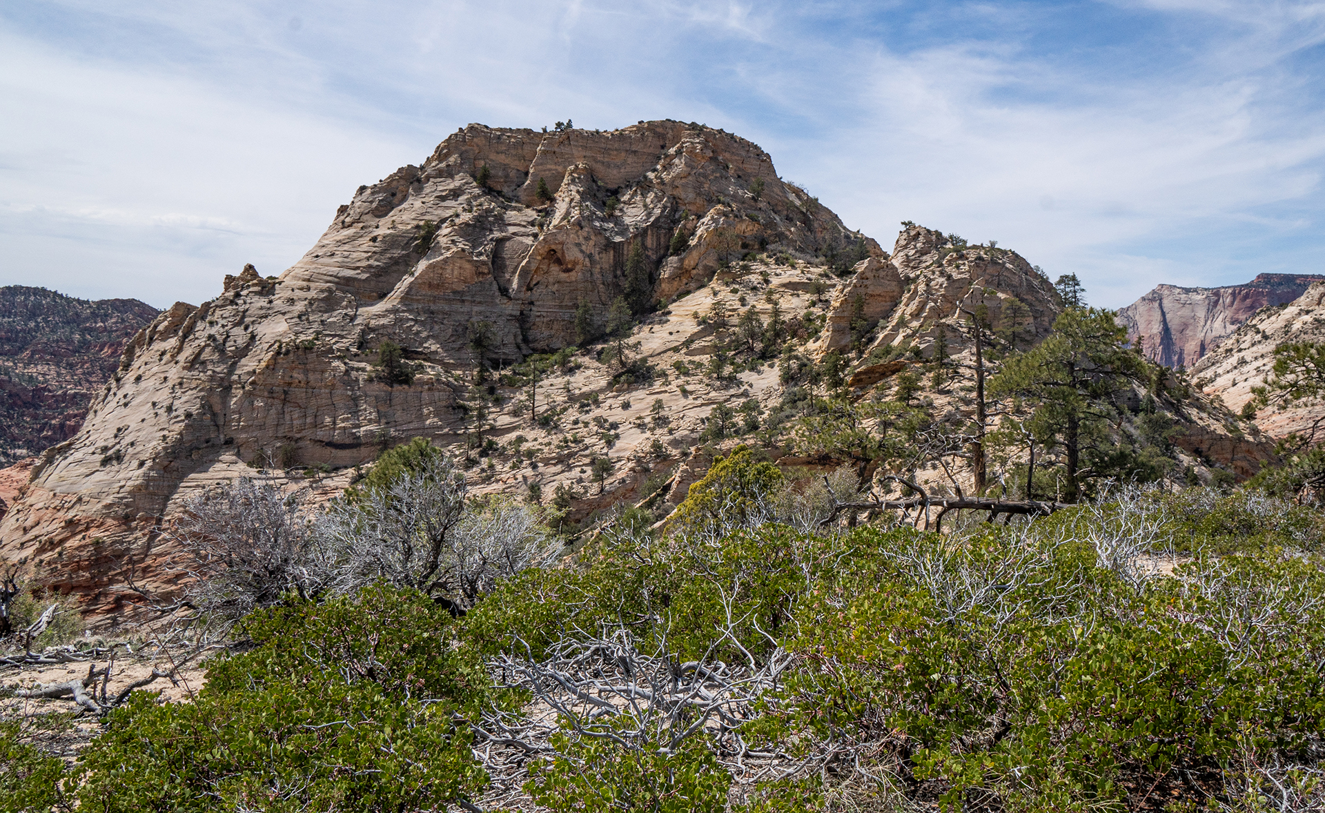Saturday April 20. Katie, Bob, Elke, and I explored the terrain around and in a beautiful valley SE of Yellow Rock. Cloudy day, but sunny spots. I was tired as this was third strenuous day in a row. But we took it easy, enjoying the generally mellow terrain.