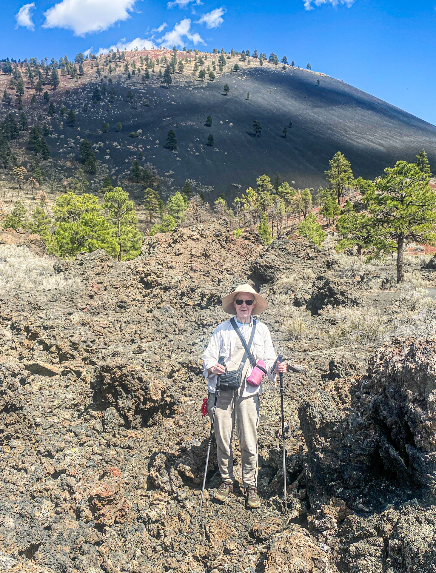 Sunday April 21. Joan and I stopped at Wukoki Ruin, and then a one-mile hike through the lava of Sunset Crater. It erupted 800 years ago, rather recent. Night in Flagstaff.