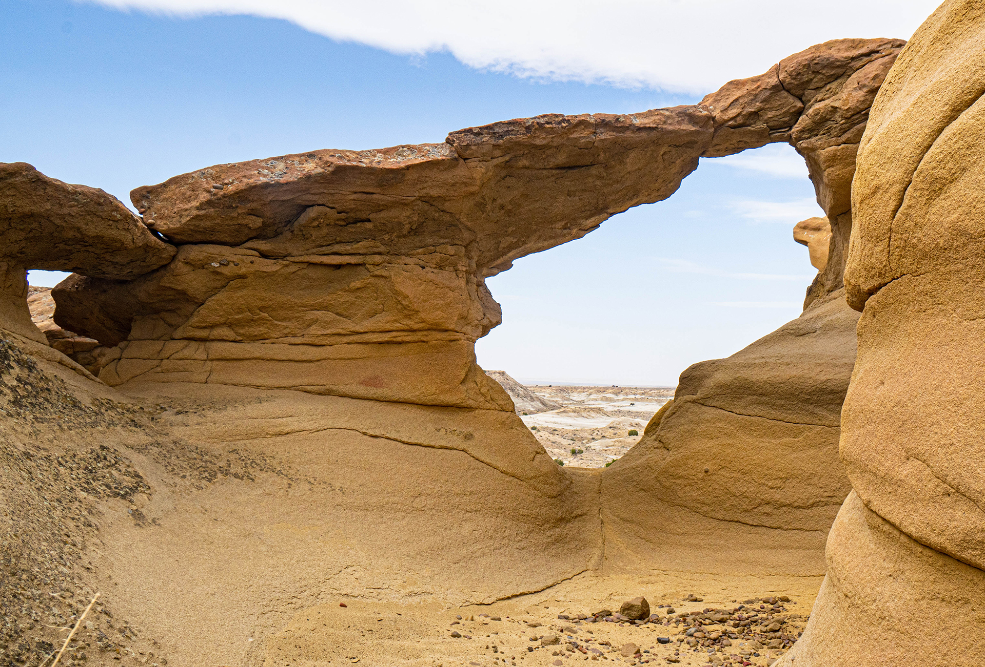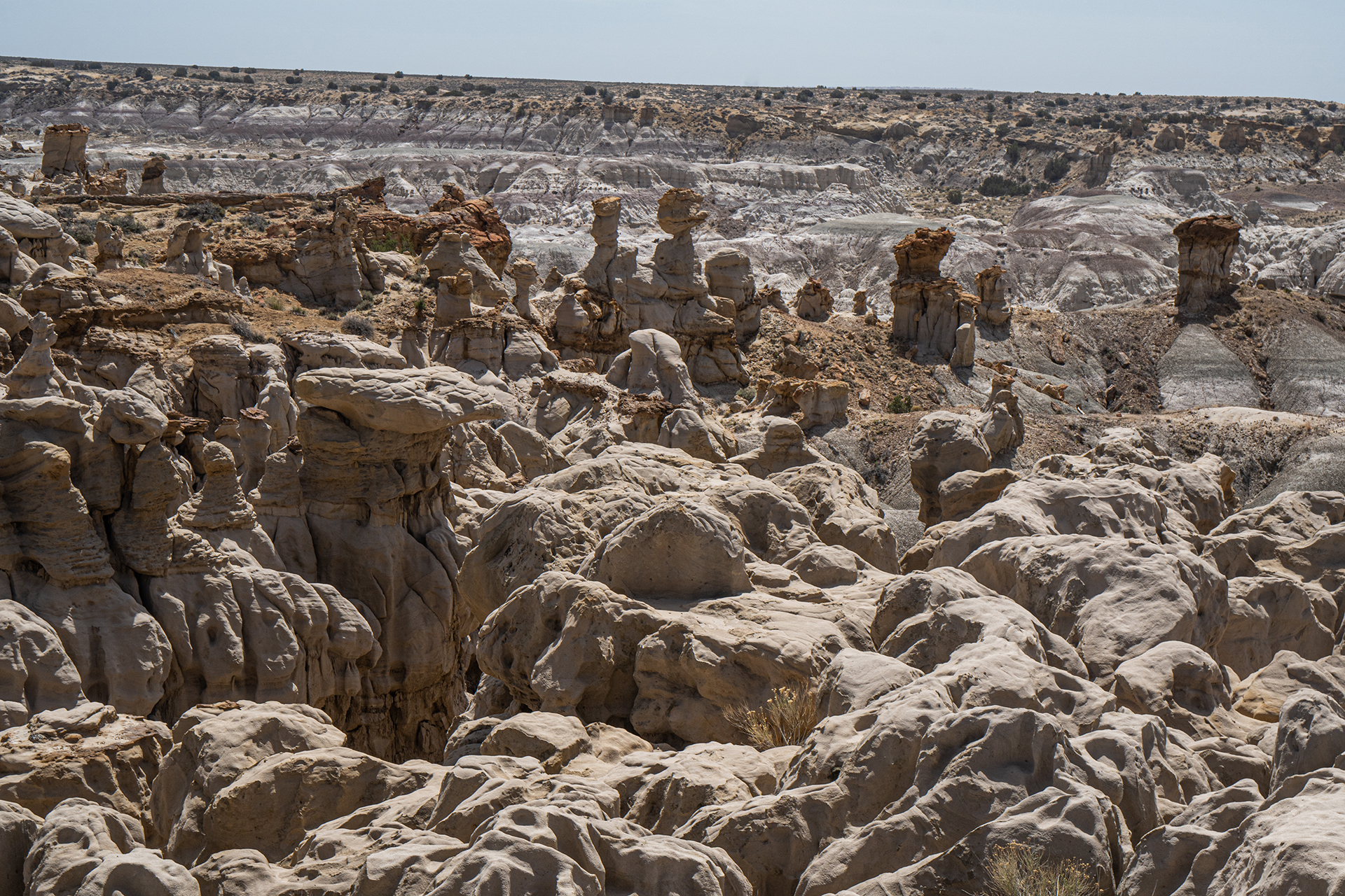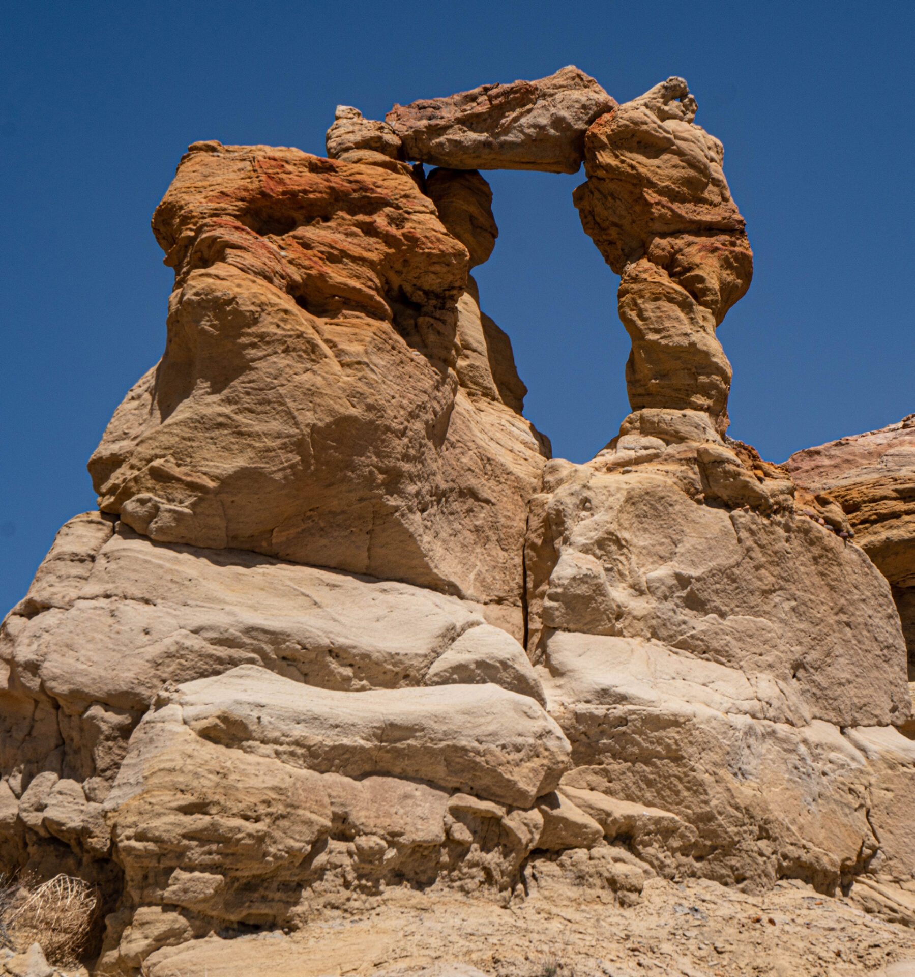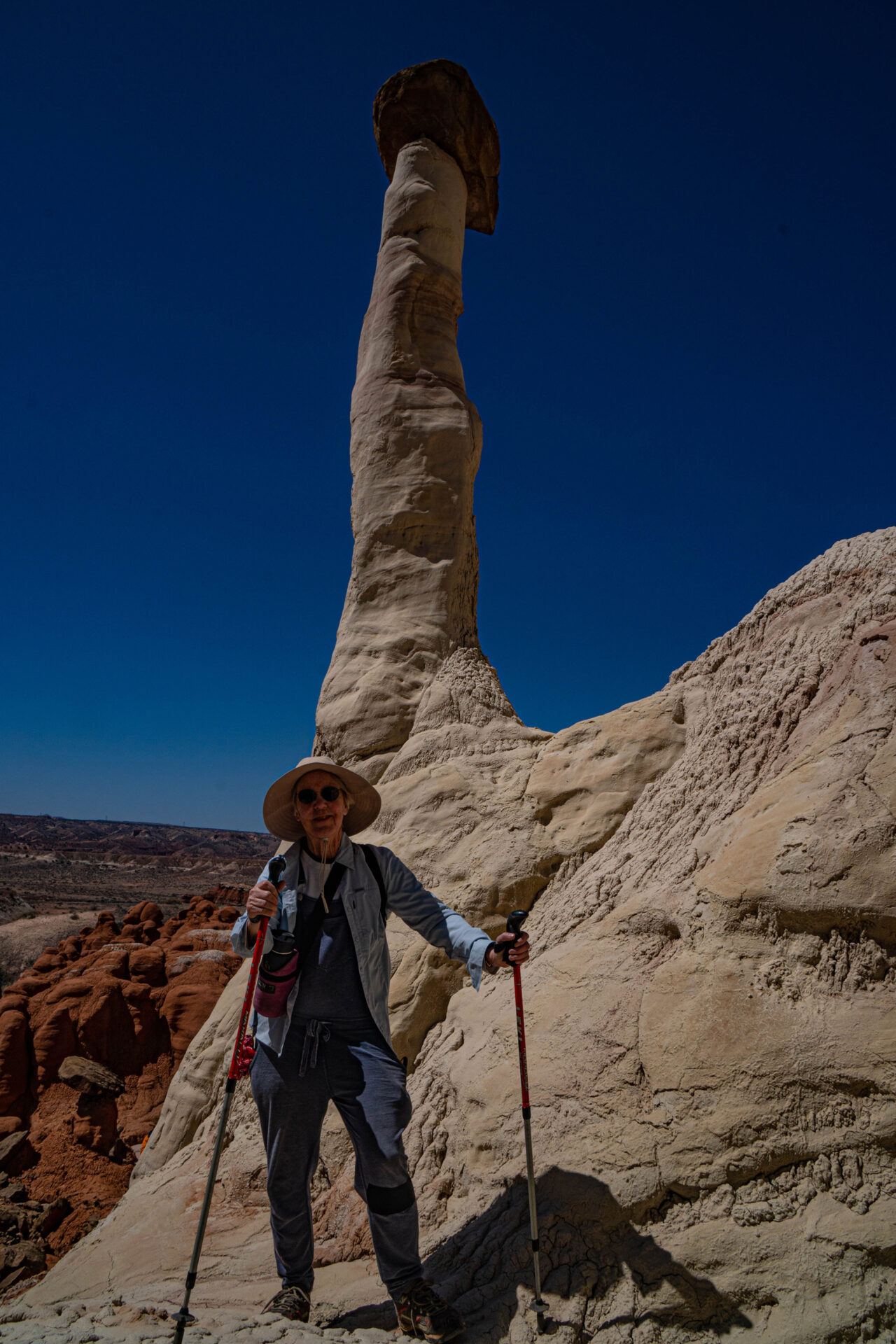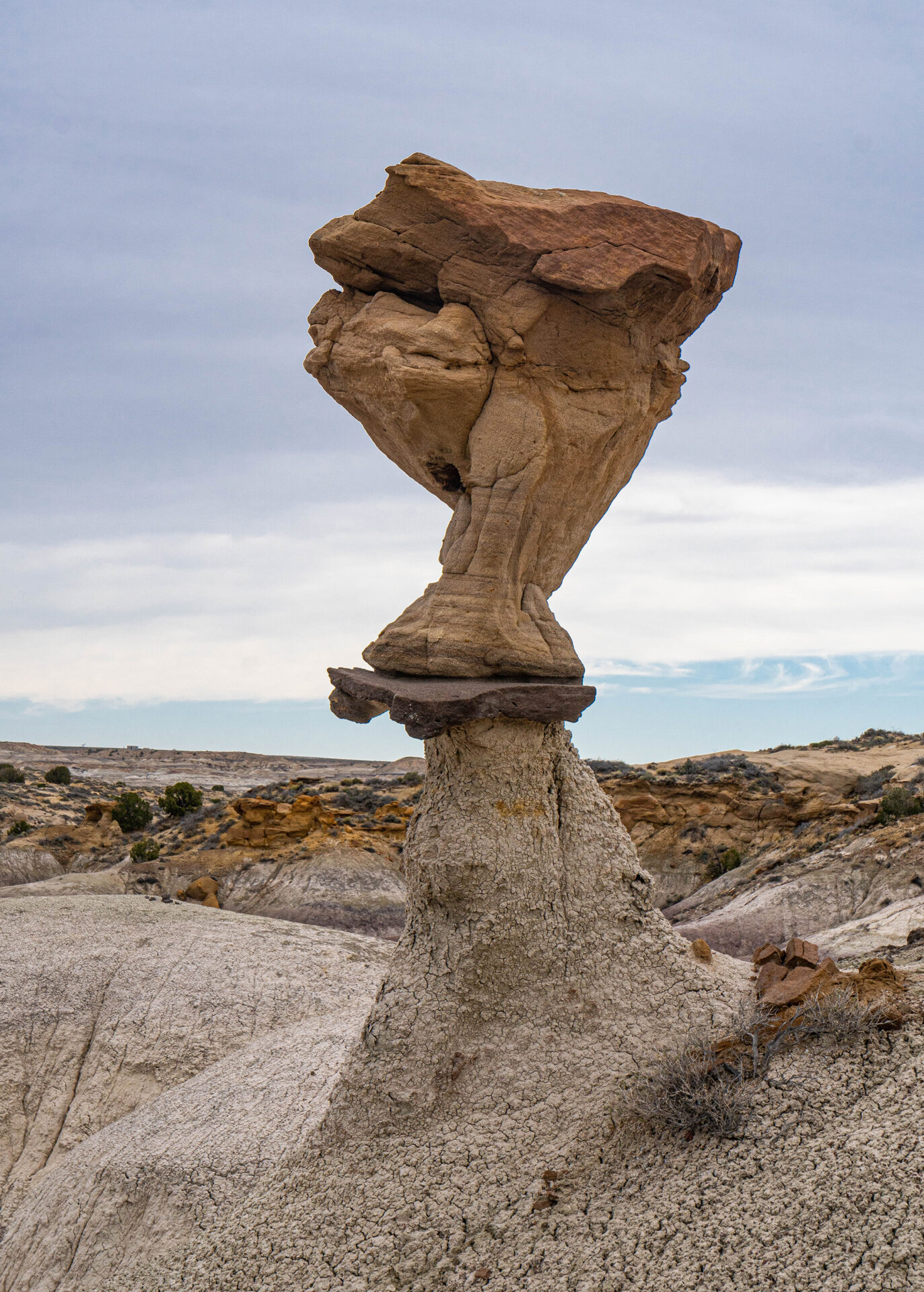 A double hoodoo: The caprock in the center serves as the base of the upper hoodoo (San José formation) and the cap of the lower (not sure of this formation).