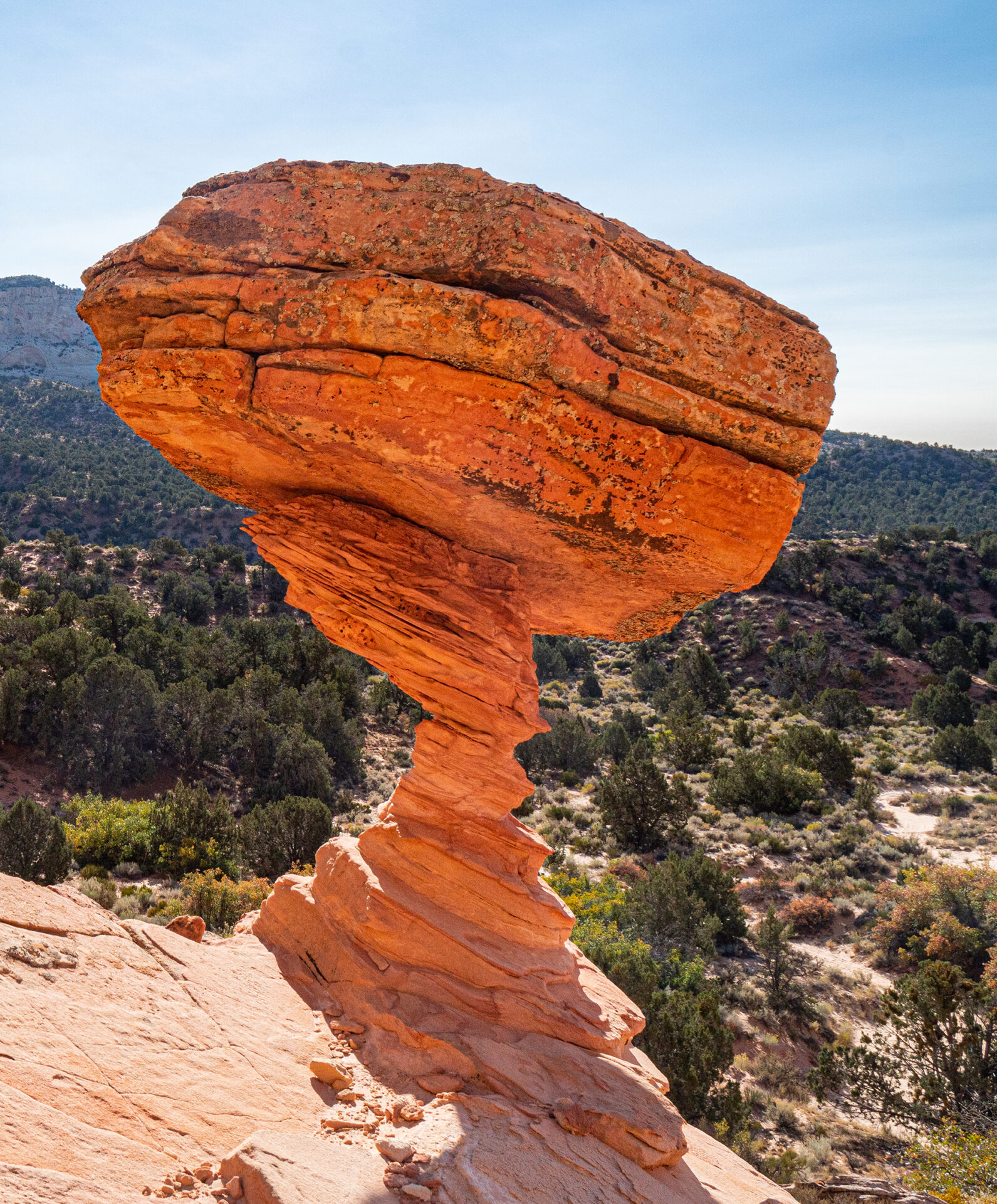 10/21 Guided drive with Joan and Bret of Dreamland Safari to some hoodoos and the Great Chamber. The hoodoos are excellent, with the one famous one in particular looking like it cannot last much longer. After the Great Chamber we visited the Red Pinnacles. We drove this as a loop, going past the Best Friends operation; they are a famous and large animal rescue center that operates on about 40,000 acres in a canyon north of Kanab.