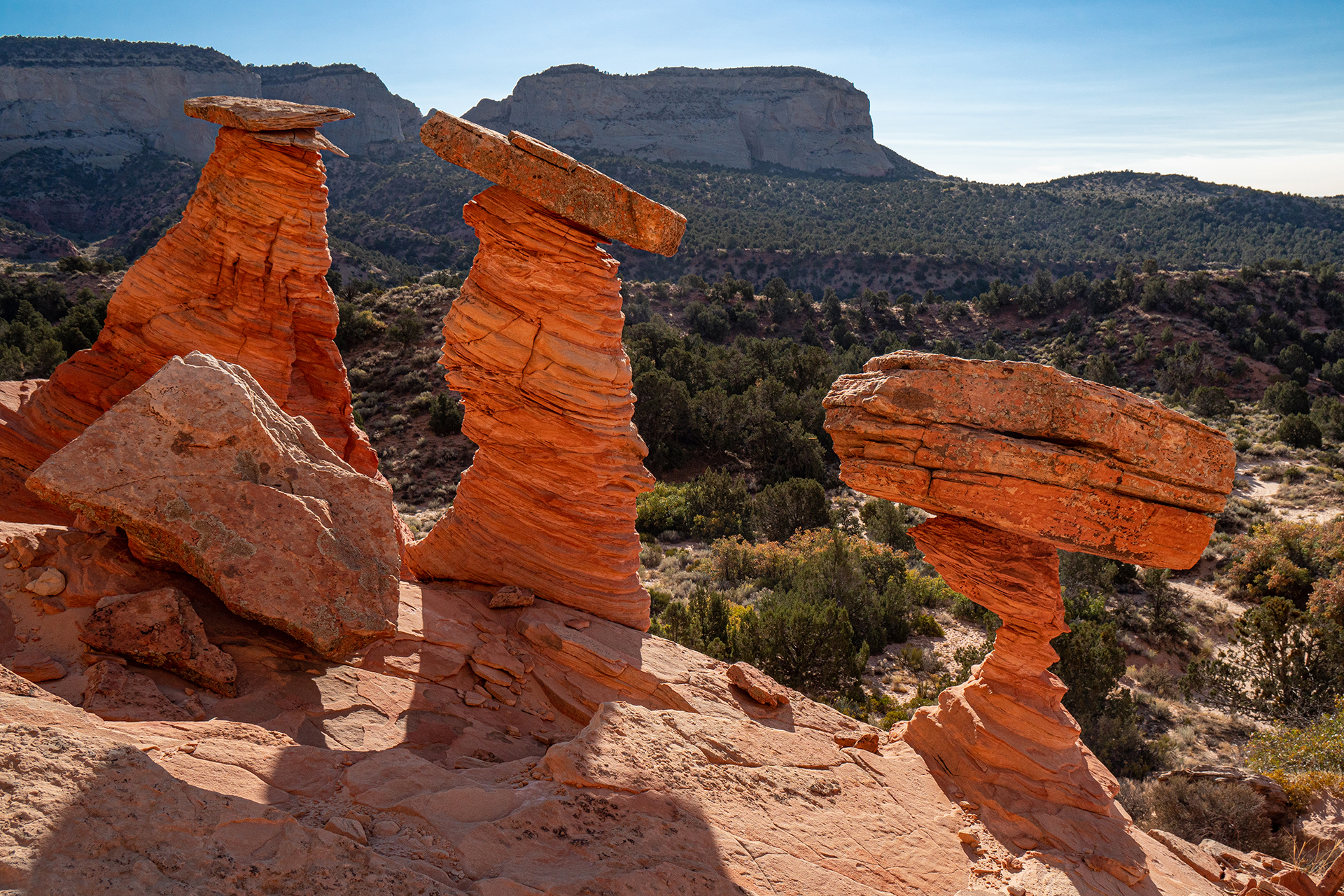 Above: Narnia Arch in a small slot canyon; some finely balanced hoodoos in Kane County.