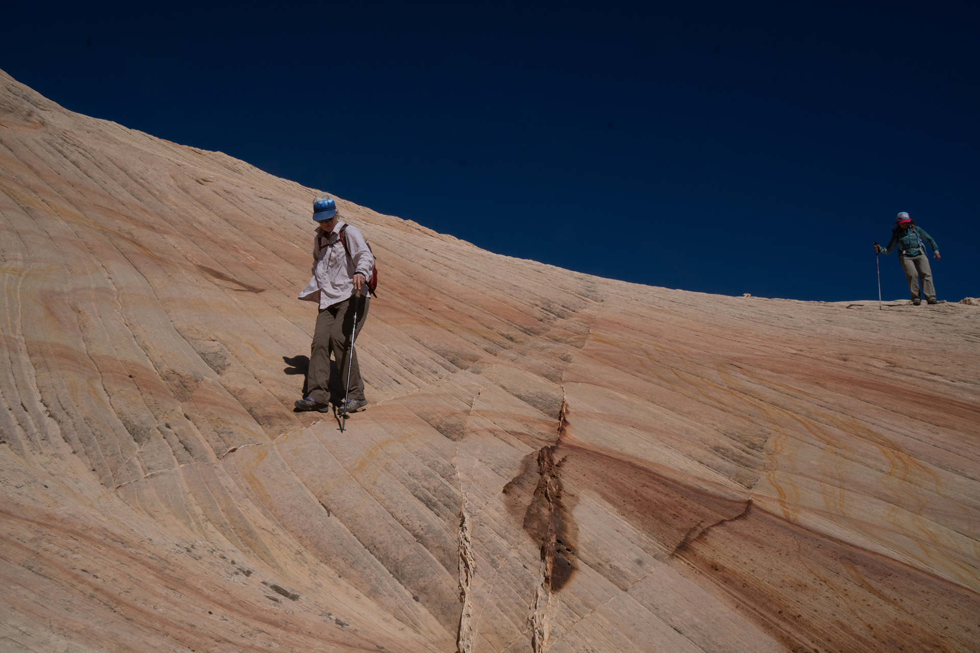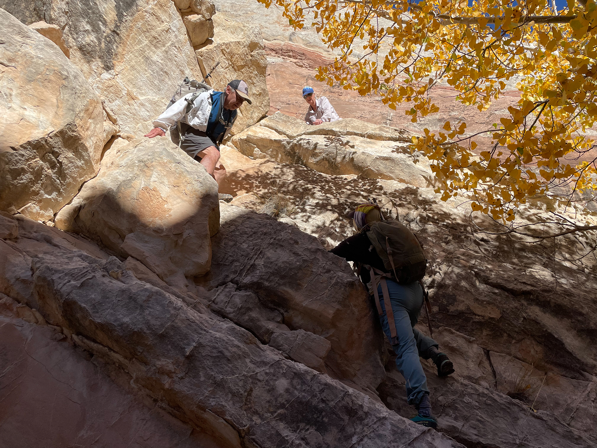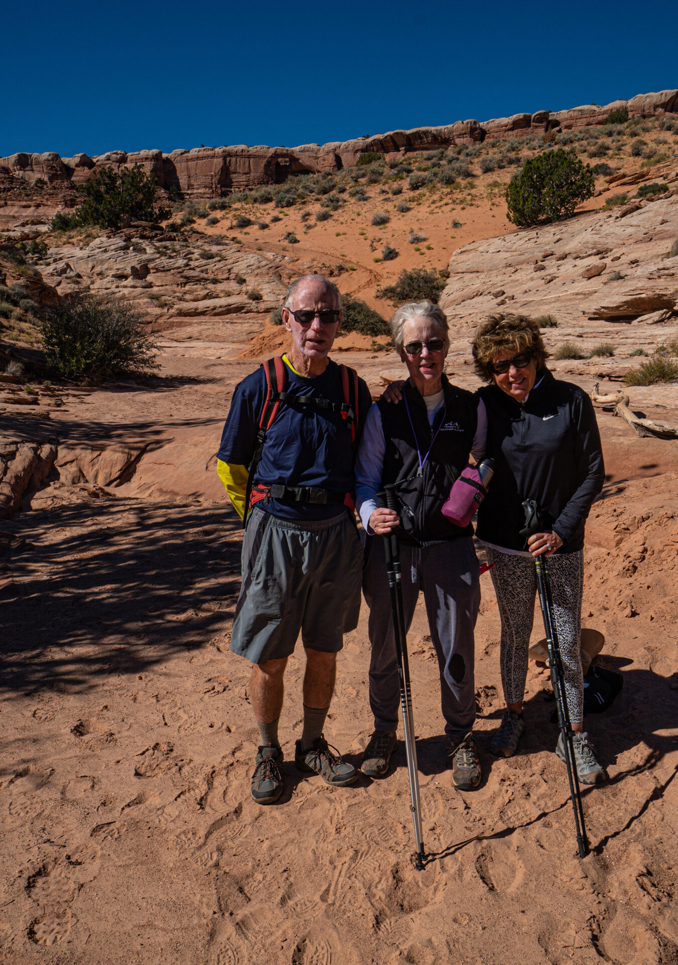 I broke my leg badly in April and had a complicated surgery. I am grateful to physical therapist Teri Day of Avalanche Physical Therapy, for guiding me back to near-enough normal that I could carry out this strenuous week of hiking in southern Utah. An old friend of mine, Jim TIlley, wrote this: “As always, spectacular photos. I marvel at your ability to recover so quickly from intricate surgery. Your group consists of poster children for mended and replaced body parts.”