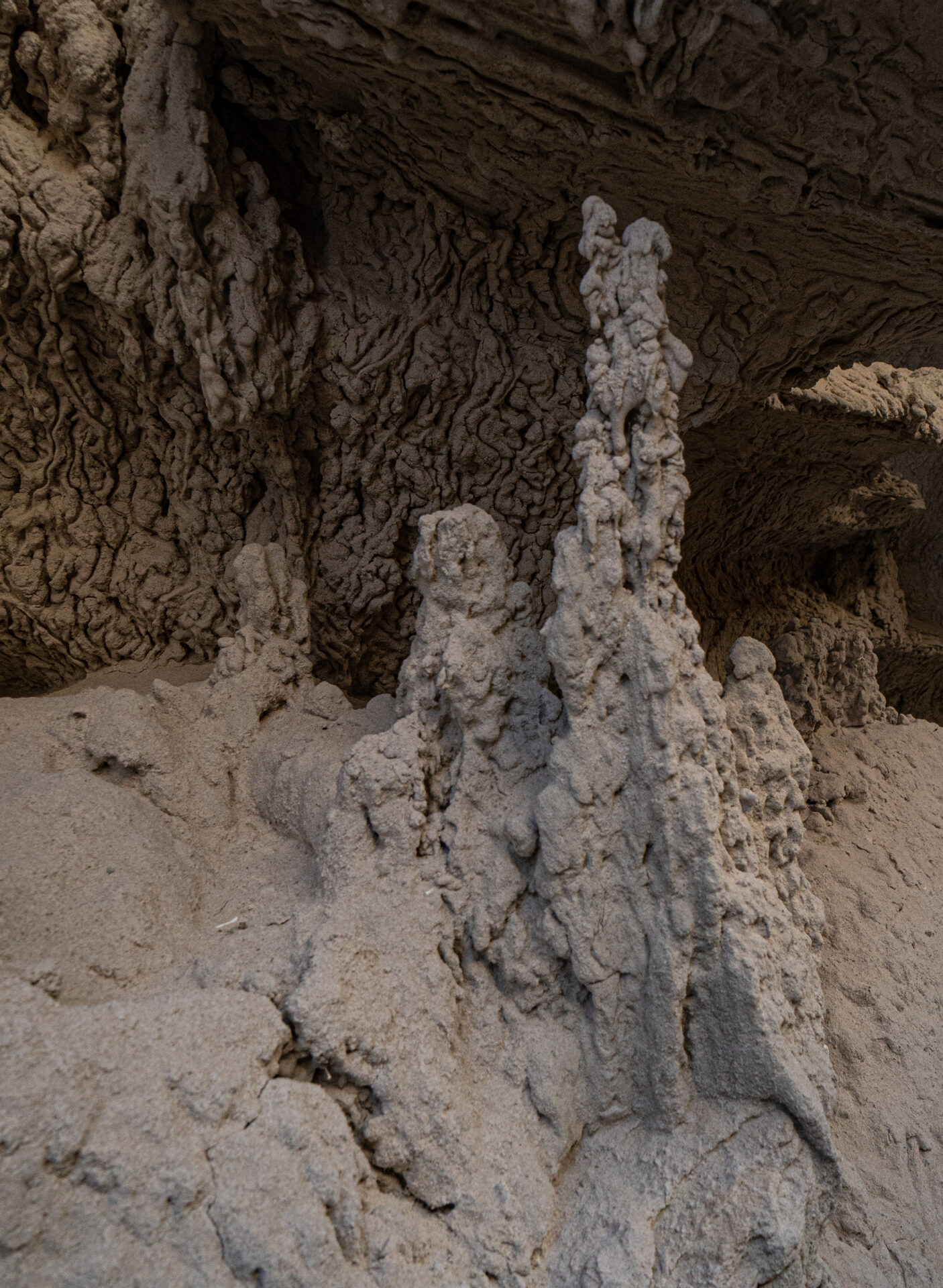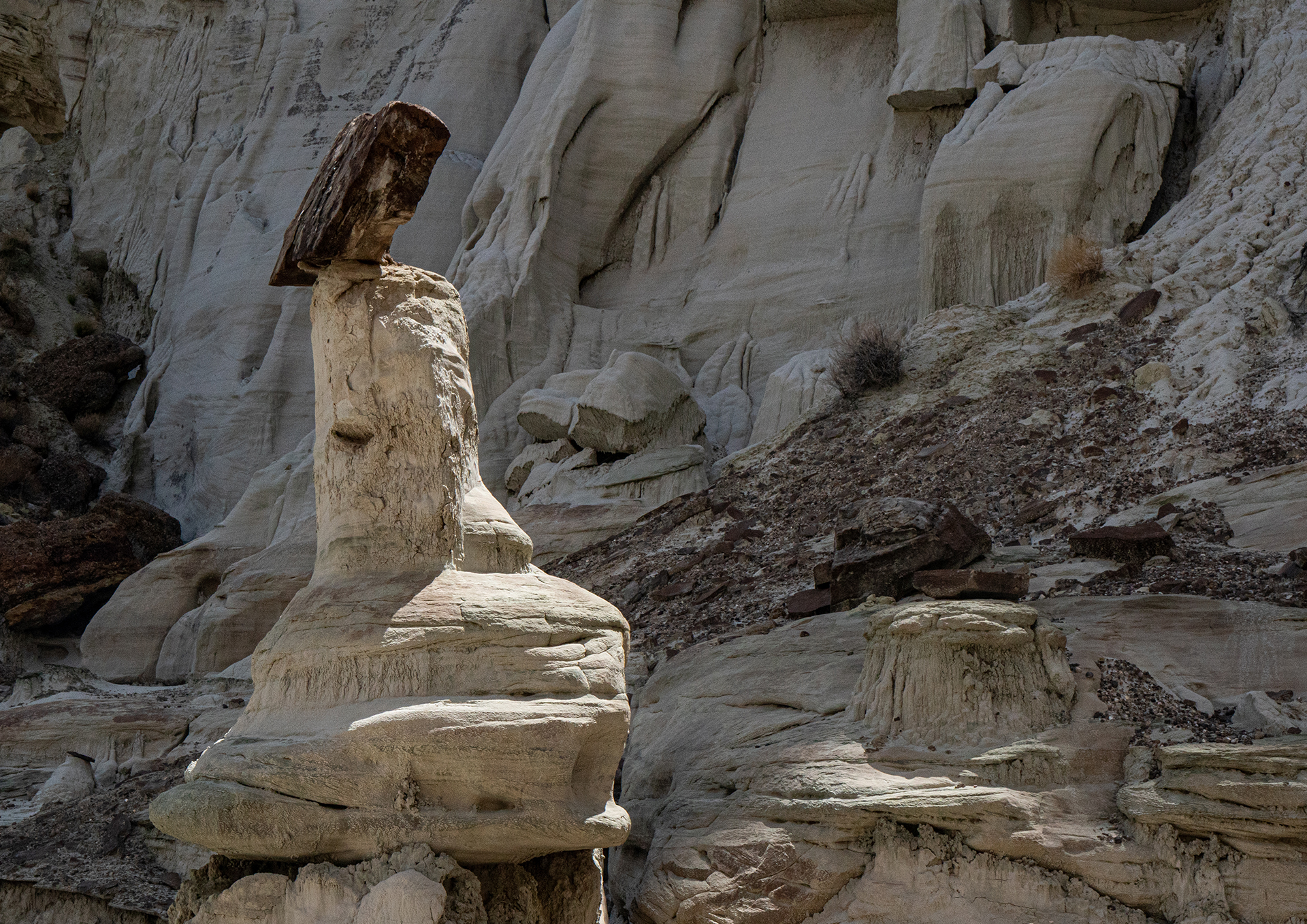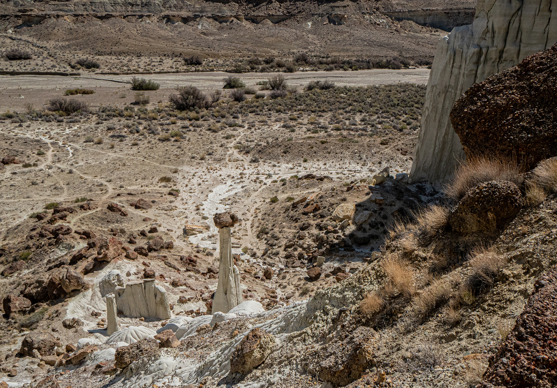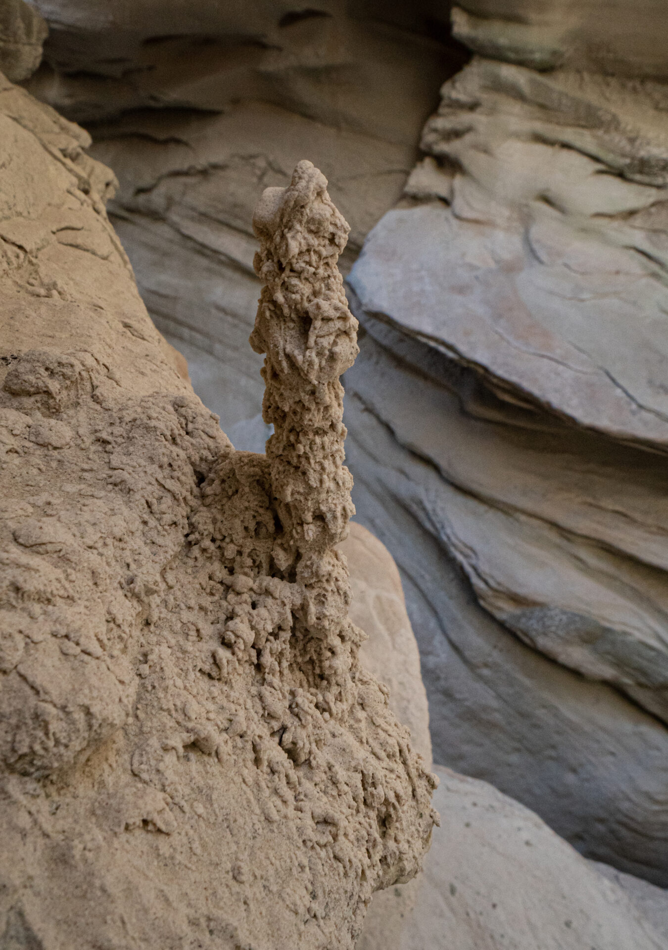 4/22: We climbed to the rim above the Tower of Silence which gave us a view of the next canyon east. So on return we went in there and found some interesting hoodoos.