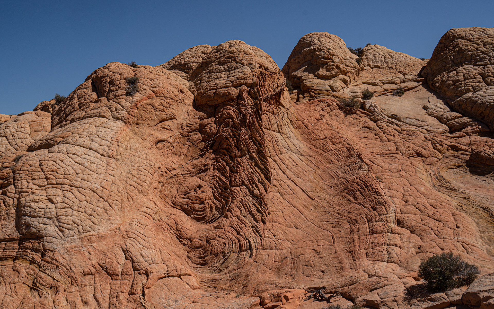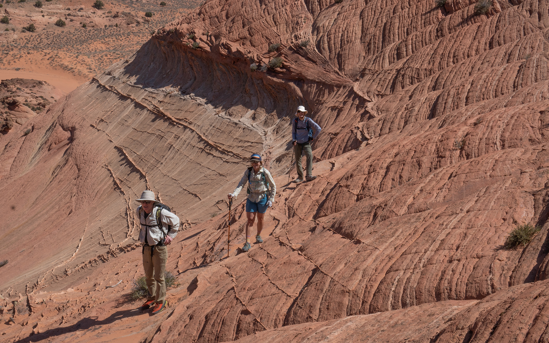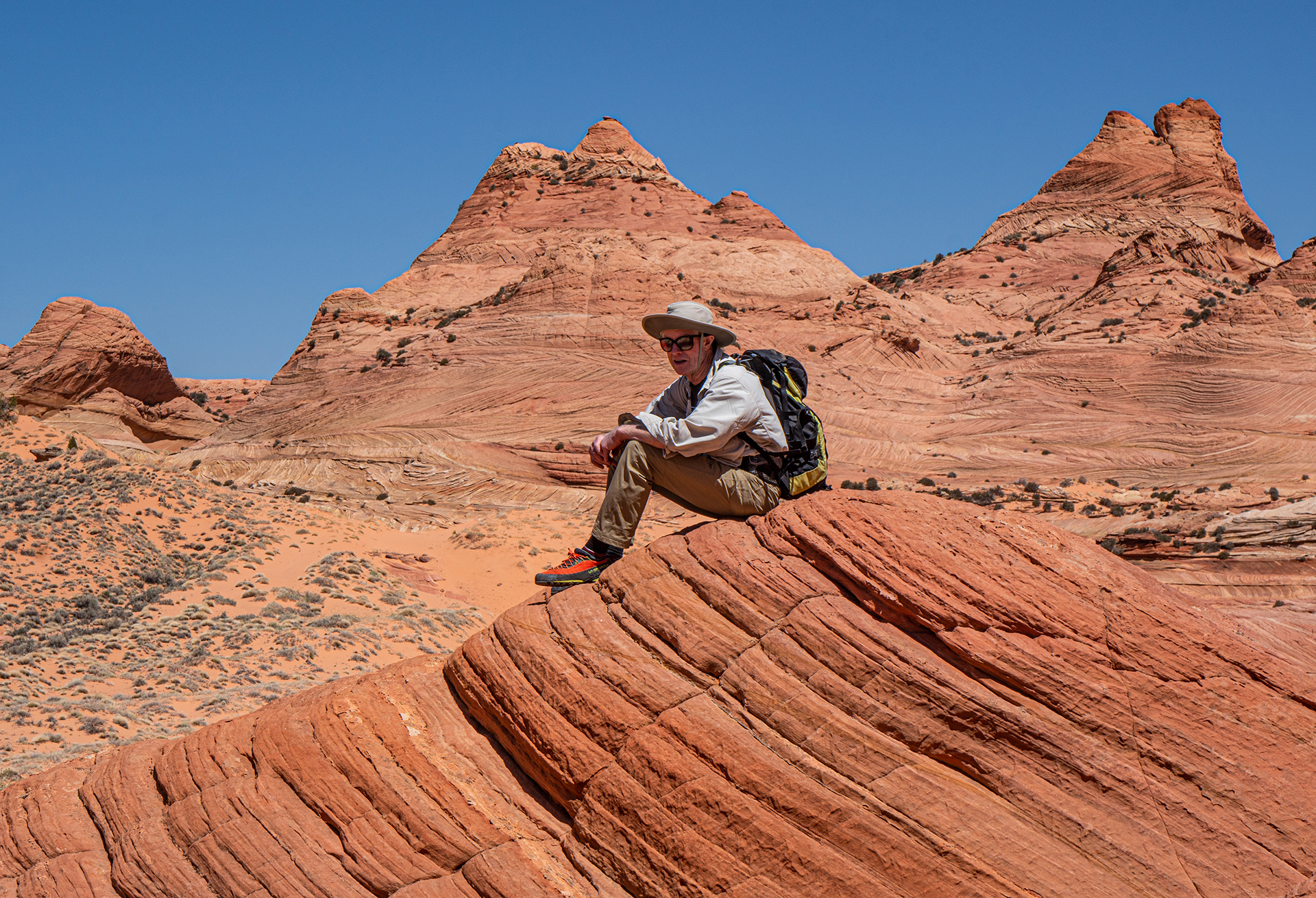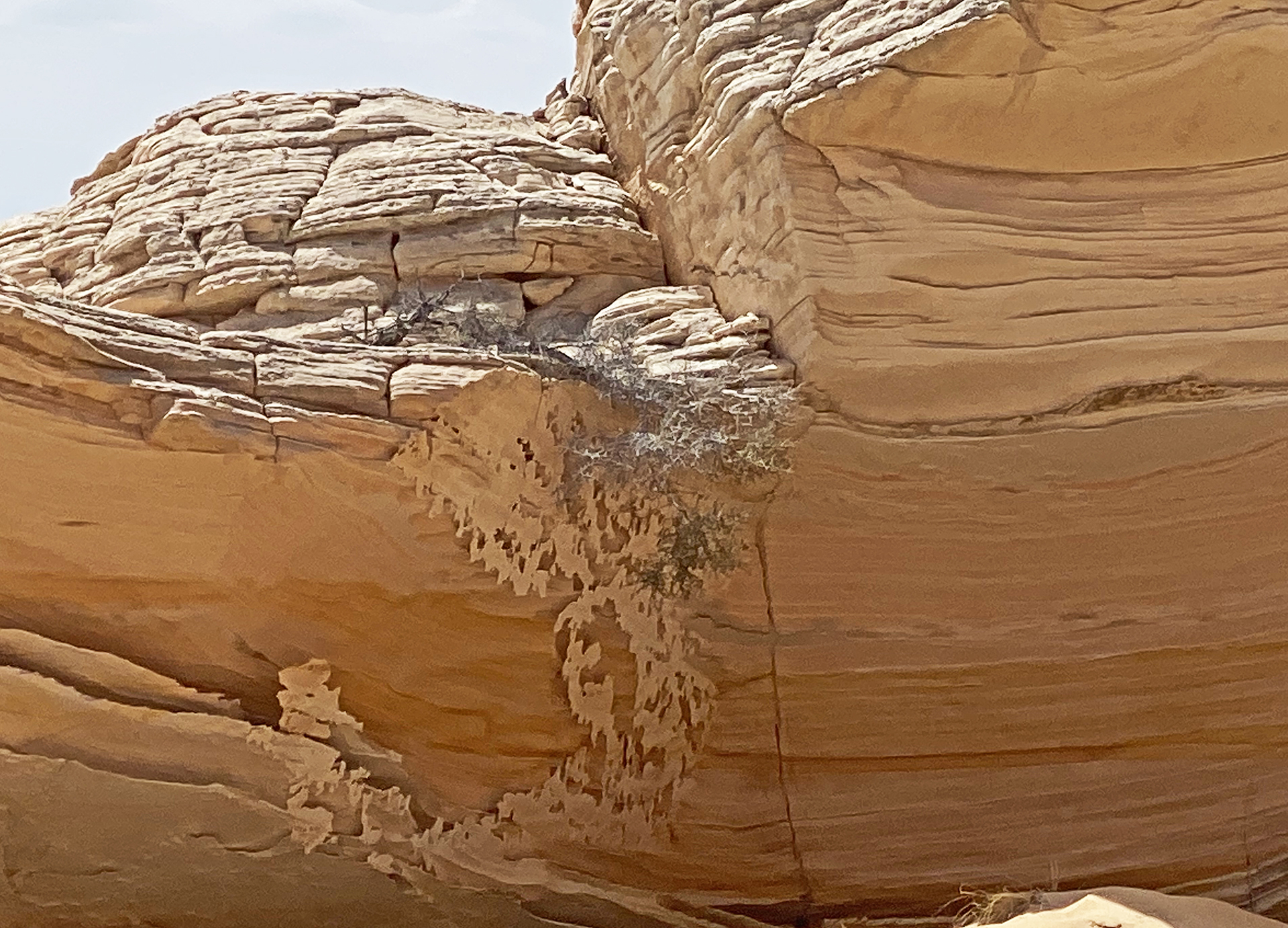 4/20. Elke and I spent a day at the White Pocket with guide Paul Gagner of Dreamland Safari. We explored the White Pocket and then climbed to top of White Pocket Butte. Joan and Martha went to the Hanging Gardens near the dam.