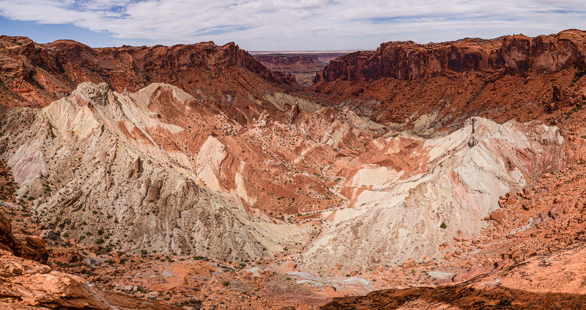 4/25. We went to Upheaval Dome. Joan hiked to the standard overlook. I went a little less than a mile around the rim in the counter-clockwise direction, and then headed to the rim for a view of the dome.