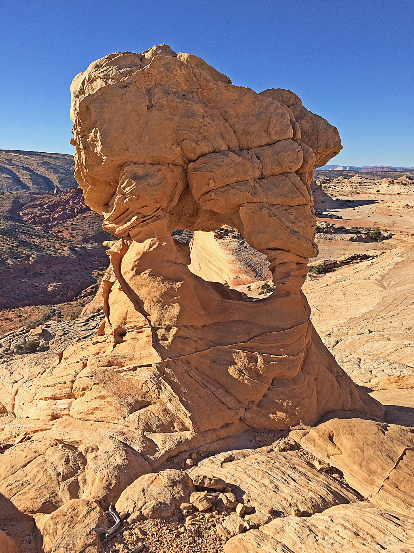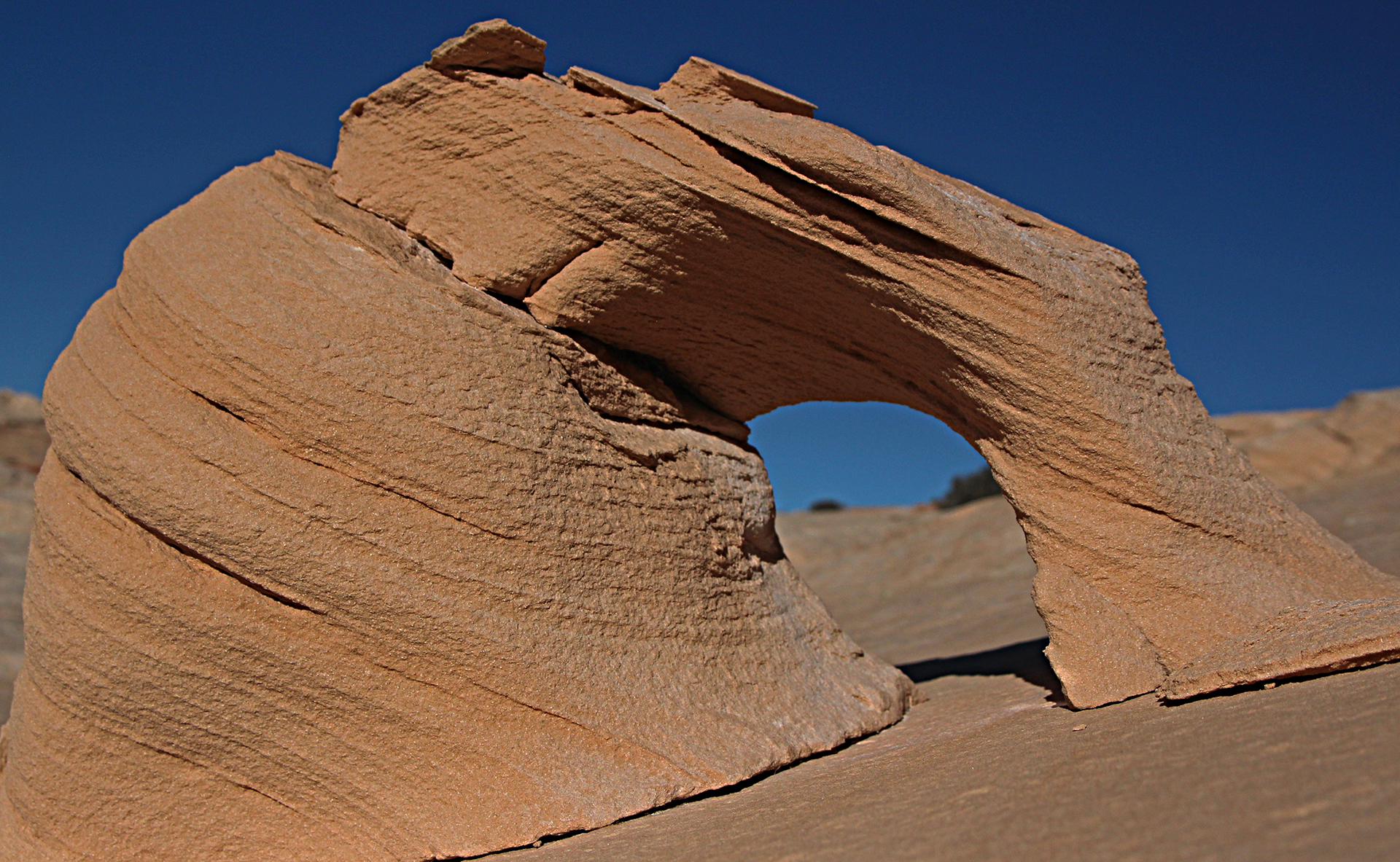 This arch is more typical of the size of these things in the Navajo sandstone. Again, note the delicate fins.