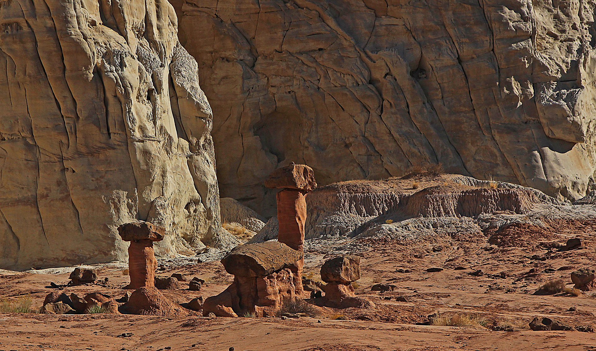 Oct. 25, 2017. Toadstools with Joan in the morning, then West Clark Bench with Bill and Elaine in the afternoon until sunset. Sadly I forgot my spare camera battery and ran out of power. There was lots of worthy photography up there, so I was disappointed with the day because of my power loss. There were some intriguing hoodoos high above the Toadstools and I believe one can hike there from the Cottonwood Road. More research needed!