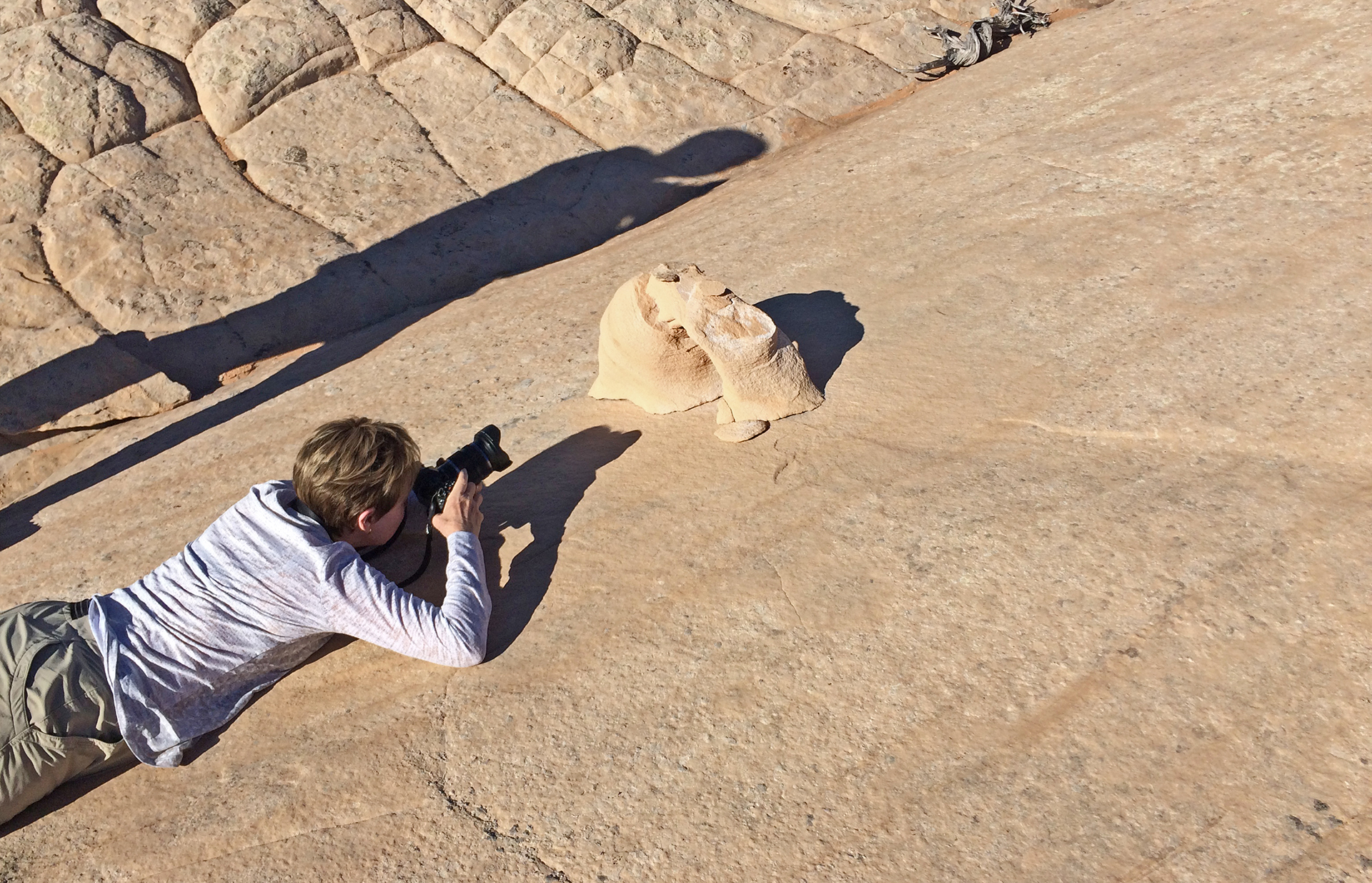 Oct. 26, 2017. We left Page early and visited the hoodoos in Recapture Pocket east of Bluff (guided by Martres’s book Photographing the Southwest Vol.1: Southern Utah, 3rd ed). Then to Blanding. We stayed at the Stone Lizard Inn, which was excellent (the breakfast and also the knowledgeable owners). The restaurants in town are quite poor, though a burrito at Pop’s was fine. I enjoyed chatting with old-timer Henry Lyman at the visitor center about history, farming, etc. The Recapture Hoodoos were not really very exciting, because of the nature of the sandstone (different than the Toadstools).