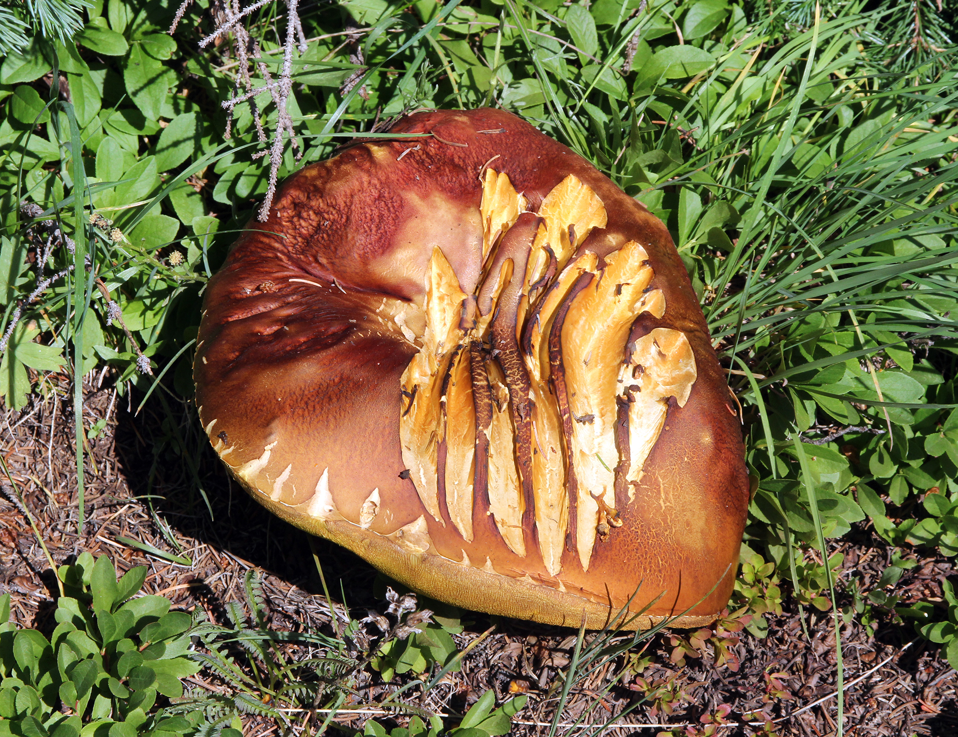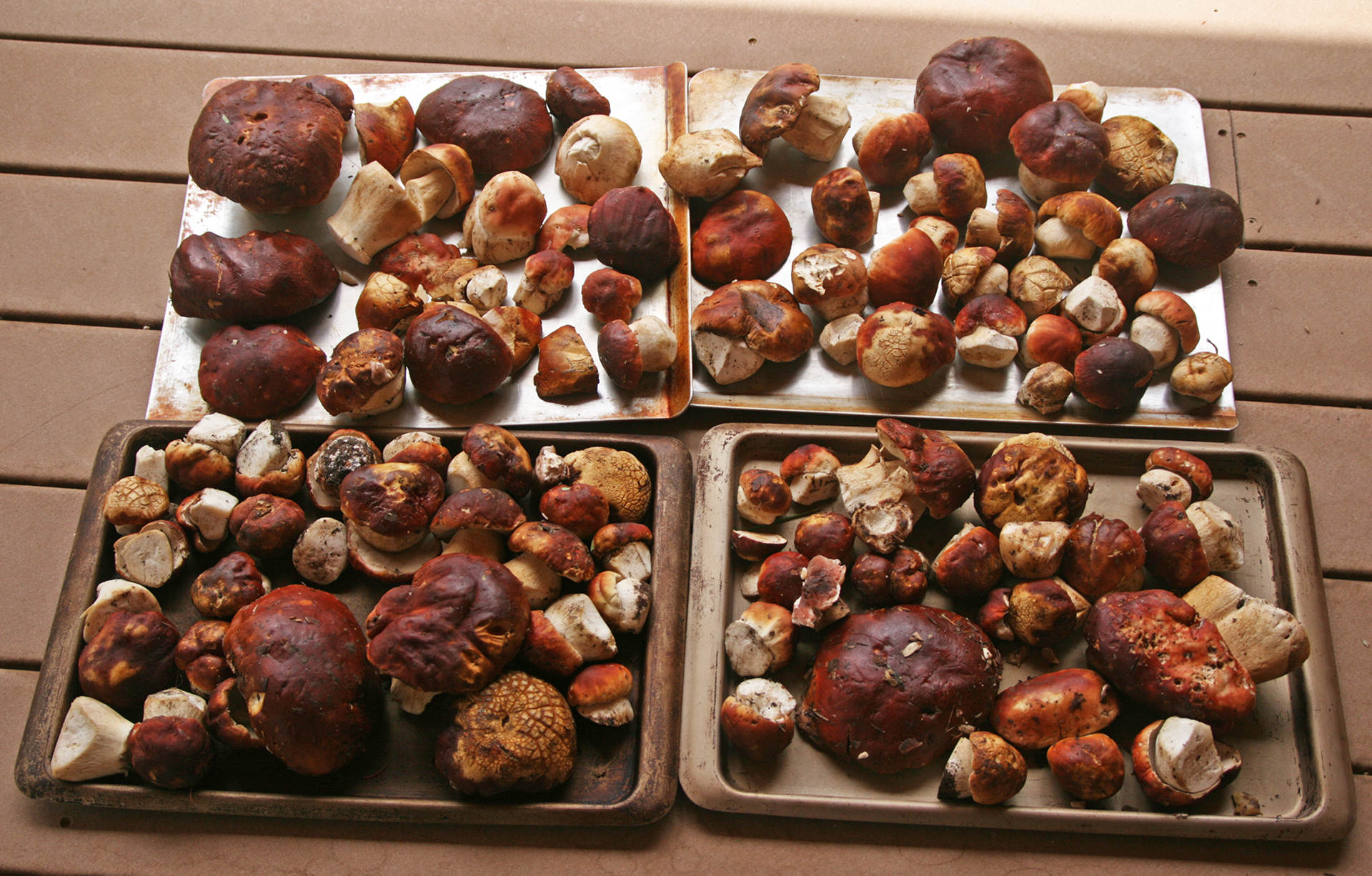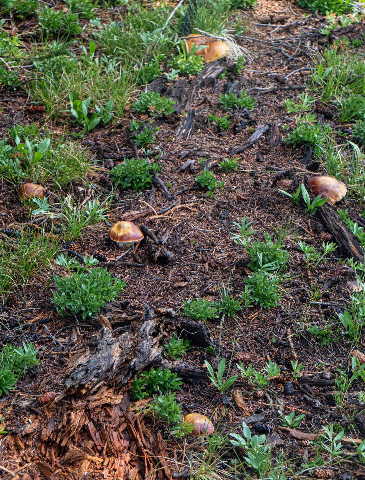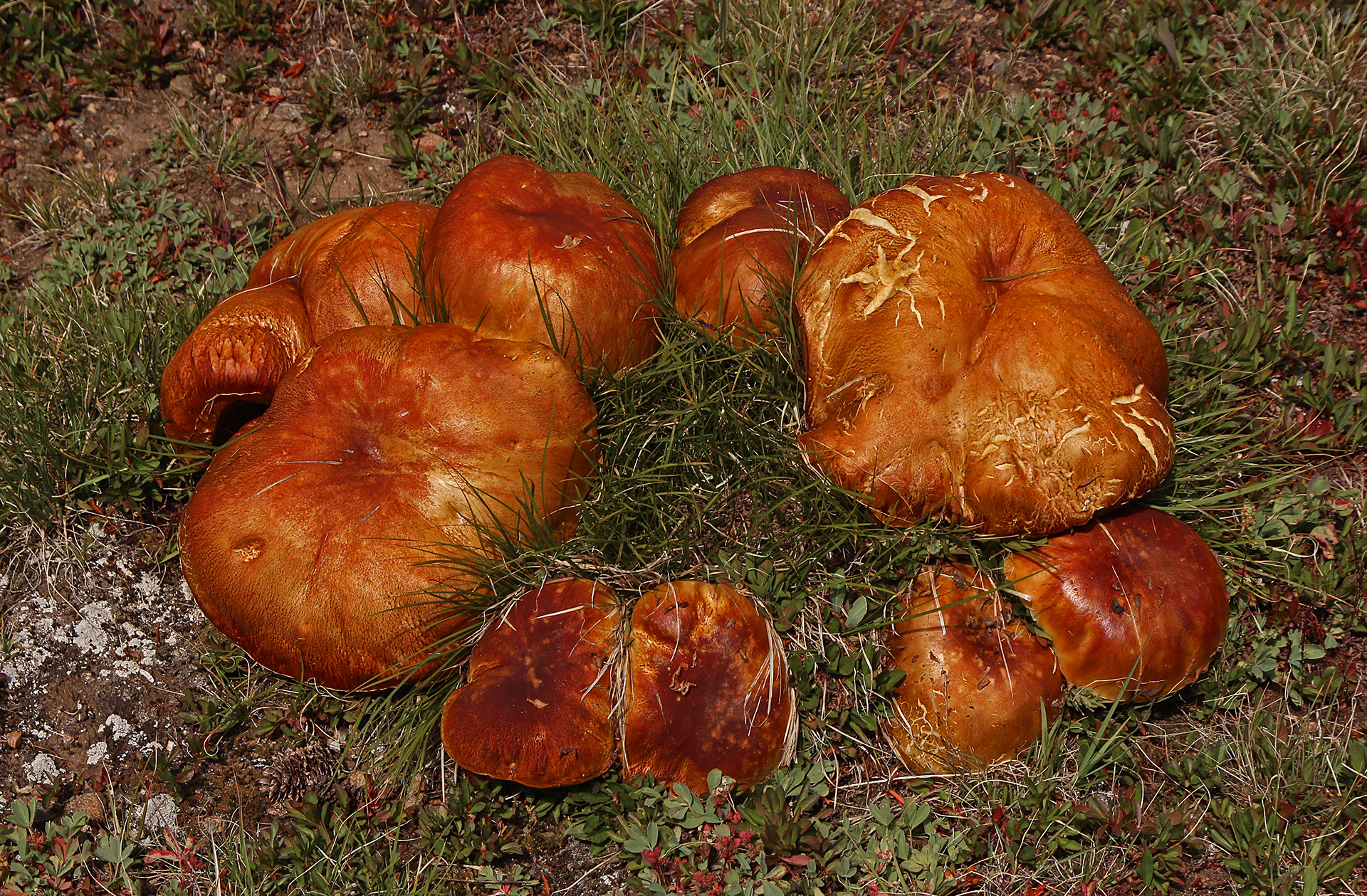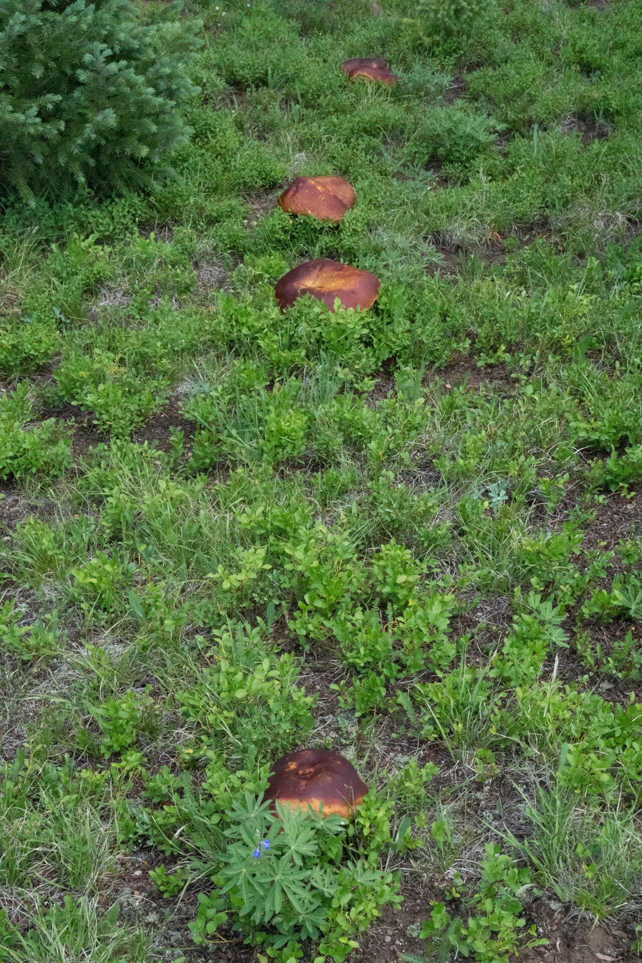 This fairy circle of porcini was so beautiful I did not disturb it.Close-up of preceding.Two perfect specimensAlmost four and a half pounds!The preceding large specimen was as perfect on the inside as on the outside.Jonathan Kriegel. We no longer need guidebooks to identify porcini.Pushing up a log.Pushing up a rock; hence “stein-liz”.My nephew Rudi Brooks, and his wife Juli.Amanita mascara indicated porcini are close. Not always this close!My brother-in-law John HutchinsonFound with my nephew Rudi.Marks of a bear.A 14-inch diameter porcino.