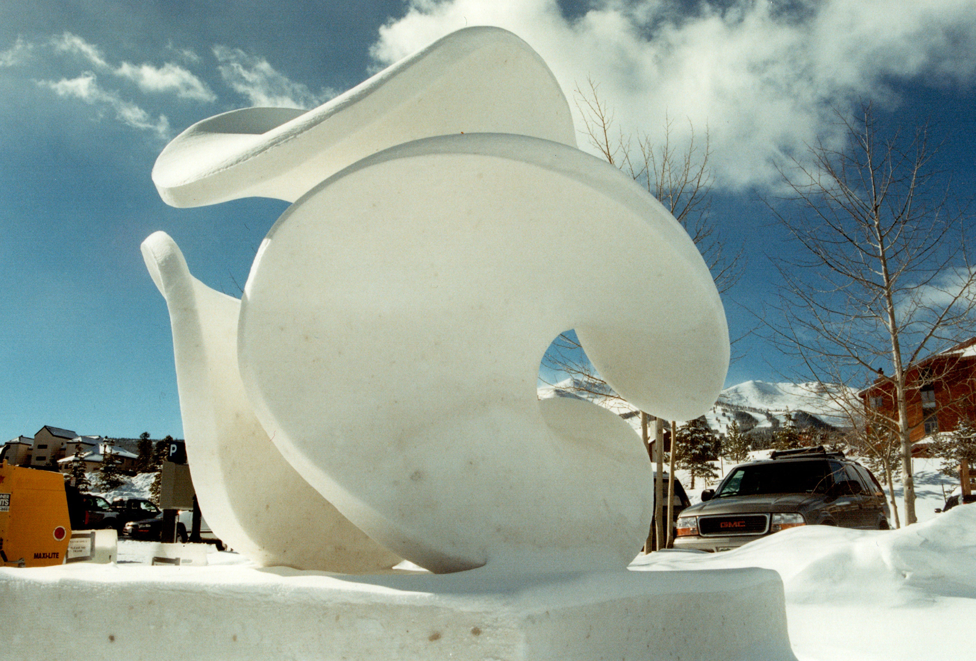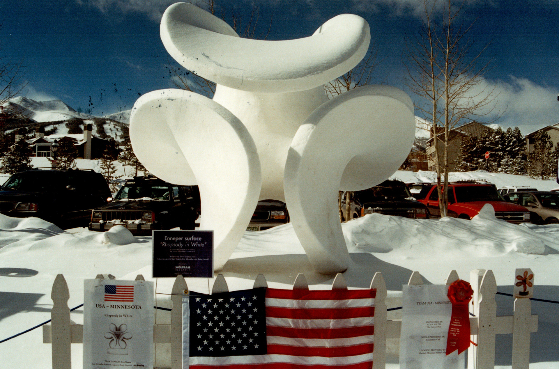 This was fun: In only our second year we created, under Robert’s guidance, one of our best sculptures ever. And it appealed to everyone: the general public, the other snow sculptors, and the judges. The two supports for the overhang were removed at the last minute, with no movement. Satisfying. Minimal surfaces resist deformation! The shape is a minimal surface, known as Enneper’s surface. It can be graphed using the parametric form: