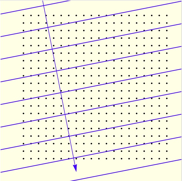 Imagine that one person is standing at each of the 19881 points on a regular Suppose a wave of water flows across this grid in linear fashion, starting at some point far away and traveling linearly at a certain slope: