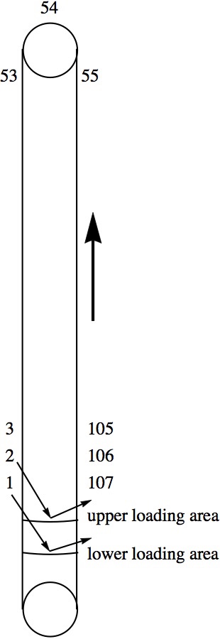 Problem of the Week 1232The Ski Lift ShuffleThe double-loading six-pack ski lift (by POMA) works like this: There are chairs numbered 1 through N. They go up the mountain in the usual way, making a U-turn at the top. But at the bottom, there are two loading areas, one closer to the top than the other. The first chair down goes to the lower area, while the second one down detaches at the higher loading area. They are both loaded and then they rejoin the main cable so that the second one moves ahead of the first one. This shows N = 107, the number of chairs in the only such lift in the USA: