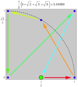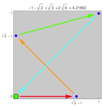 The best cycle for the posed case was found by Robert Israel, Al Zimmermann, Witold Jarnicki, and Rob Pratt. Several others found the same point set, but started the cycle at the origin, which is not as good as the start point above. Note that in the literature this algorithm is sometimes called the "Nearest Neighbor" algorithm for the traveling salesman problem, with "Greedy" reserved for the algorithm that, at each step, chooses the shortest possible edge among the legal edges currently remaining.
