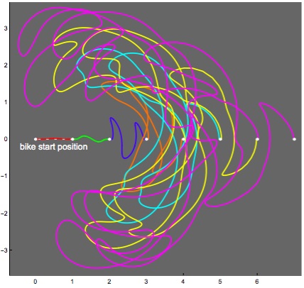 The image of this bike = unicycle path is interesting and amusing, and I encourage you to view the diagrams of several iterations of this in my notes, e.g.,
