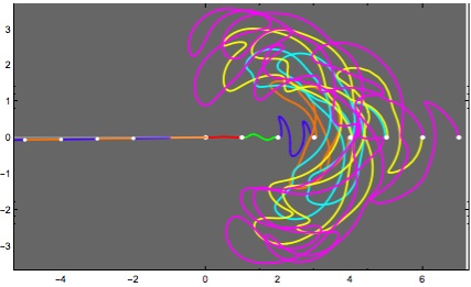 One can also run the process backwards, and treat f0 as the front track. The rear track is then obtainable by (numerical) solution to a fairly simple differential equation. This was Jim Guilford's approach. One observes that such reverse tracks become asymptotic to straight lines, and Michael Elgersma has a proof that this is always the case. It is related to this observation by Serge Tabachnikov: The forward (tangent) operation always increases length; therefore the reverse (differential equation) decreases length.