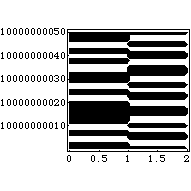 Problem of the Week 988A Graph That Will Make You SmileAlice: I have just come across a graph that is the funniest thing I have ever seen. Just graph the set of points (x,y) such that 1/2 < floor[ mod(floor[y/17] 2^(-17 floor[x] - mod(floor[y],17)), 2) ] Bob: Let me be sure I understand: the thing inside the outermost "mod" is not an integer. What does "mod" mean here? Alice: It means the remainder when multiples of 2 are subtracted. So mod(15/4, 2) would be 7/4. The mod function in most computer programs works this way, so don't worry about it. Bob (some minutes later). You're right. It is not hard to graph. The function on the right is either 0 or 1 so it is just a matter of computing where it is 1. I did it and didn't see any points at all for small values, so I went up a bit and found the following. I fail to get the joke.