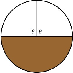 Problem of the Week 1101It's a Piece of CakeA round cake has icing on the top but not the bottom. Cut out a piece in the usual shape (sector of a circle with vertex at the center), pull it out, turn it upside down, and replace it in the cake to restore roundness. Do the same with the next piece; i.e., take a second piece with the same vertex angle, but rotated counterclockwise from the first one so that one boundary edge coincides with a boundary edge of the first piece. Remove it, flip it, and replace it. Keep doing this in a counterclockwise direction. This diagram shows what happens after two moves in the case that the central angle is a right angle.