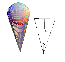 Problem of the Week 1024Hide the CaloriesImagine a right circular cone that is 6 inches high and has base angle of 30 degrees. Now place a sphere of ice cream inside and tangent to the cone.
