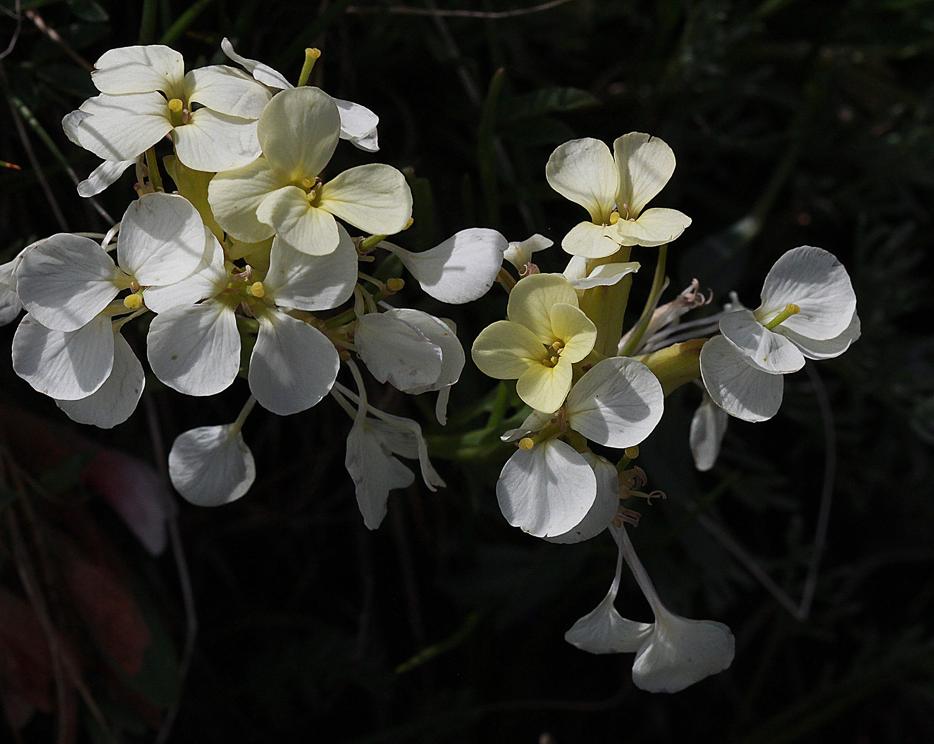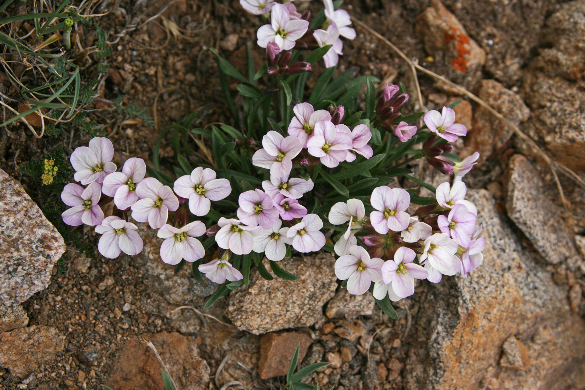 July 6, 2014, was spectacular as we went to Casco Peak and found millions of the rare purple variation to the wallflower, but also one clump of white ones and one clump of orange-pink ones. There are also many color variants along the Mt. Blue Sky road, including white.