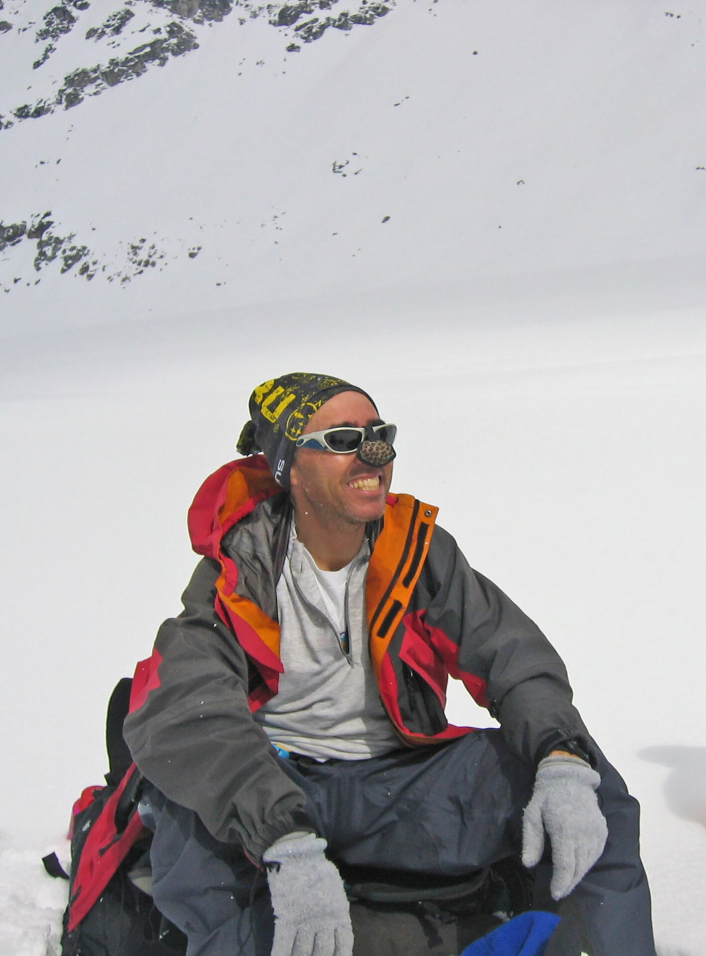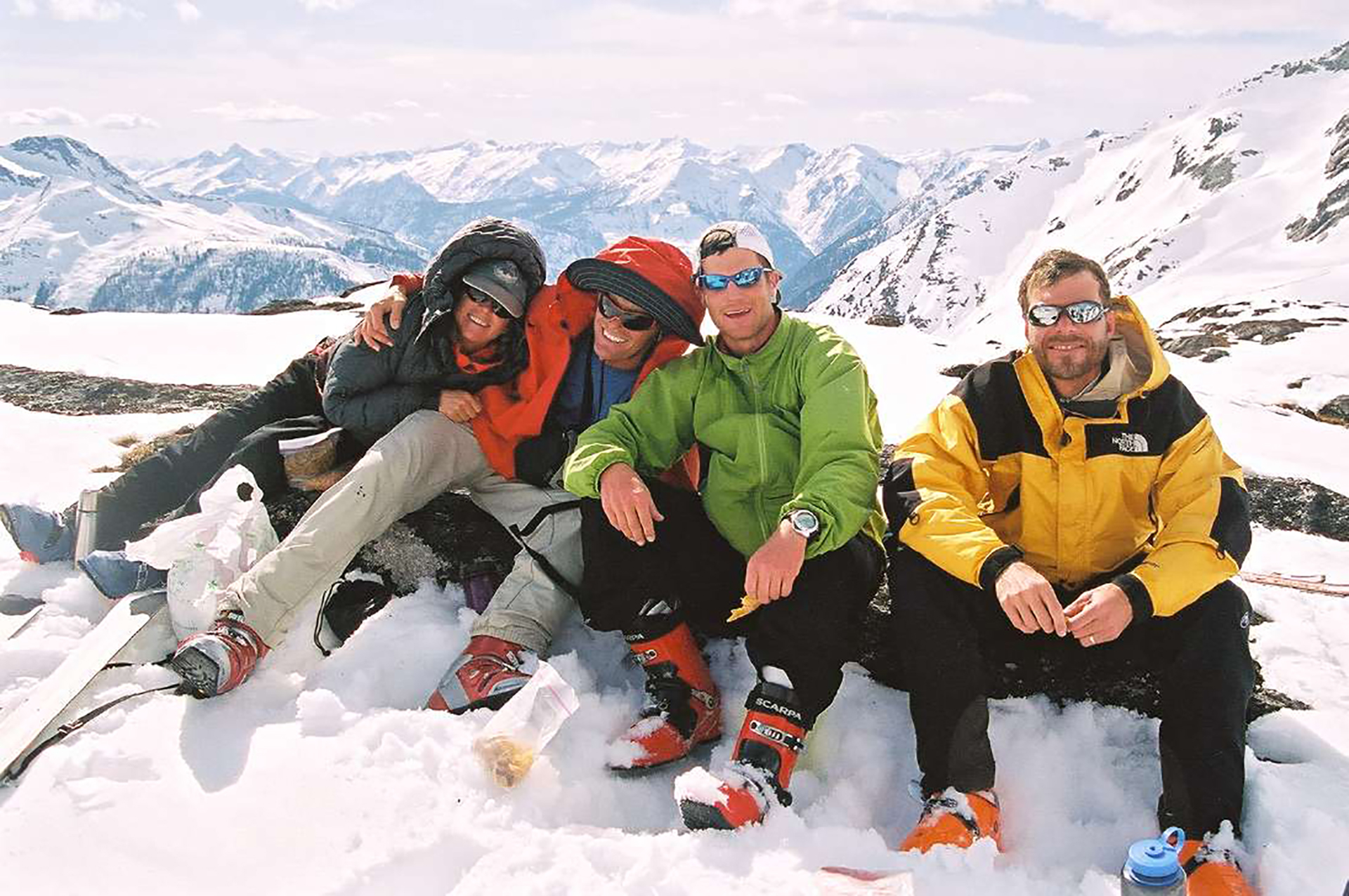 As always, the final descent to a lodge after a week of traversing is an exhilarating moment. The pack comes off for good as one prepares for the influx of fresh water and fresh people. Indeed, those first hours were a case of total sensory overload as we chatted with the departing crowd from Breckenridge (which included the two winners of the Leadville 100 km race that I competed in March) and reconnected with guides Tom Raudaschl and Robson Gmoser, cook Simon Bew, and skiers Brice and Kara Addison and Steve Taylor, whom we had met at Sorcerer two years ago, and their nine friends and relatives who were new to us, as well as Peter Coburn, a friend from Boulder. By week’s end, we were all fast friends.