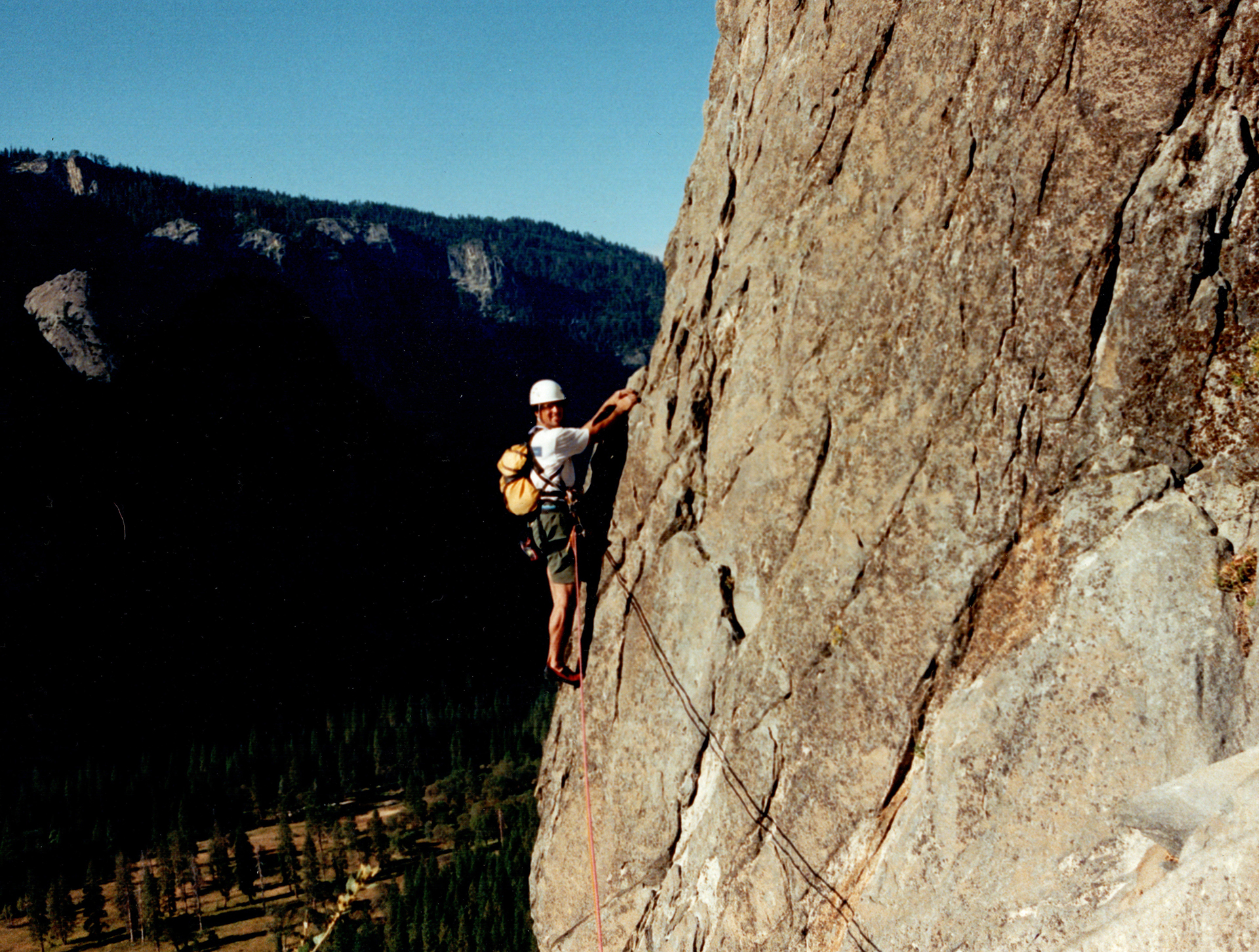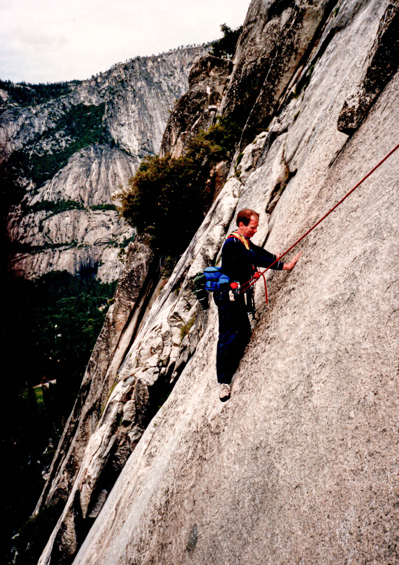 I have done a fair amount of climbing in Yosemite and Tuolomne. Highlights (5.6 to 5.10) are Snake Dike on Half Dome (twice: Sandy Kline; David Nebel). Arrowhead Arete (twice: Eric Craig; Rich Laver); Cathedral Southeast Buttress (Katie Larson), Royal Arches (twice: Rich Laver; Sandy Kline), East Buttress of El Capitan (Larry Dolecki), West Crack of Daff Dome (David Nebel), Hobbit Book (David Nebel), North Face of Fairview Dome (twice: Byron Lemay; Jim Koegel), Magical Mystery Tour (with Byron Lemay, David Nebel, Katie Larson), Nutcracker (Jim Koegel), Moby Dick (twice: Rich Laver; Byron Lemay), La Cosita Left Side (David Nebel), South Crack of Stately Pleasure Dome (twice: Rich Laver; David Nebel), and many others. Here is a sampling of photos.